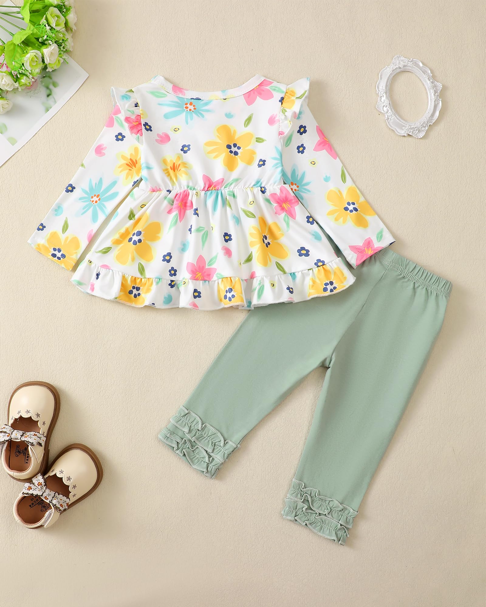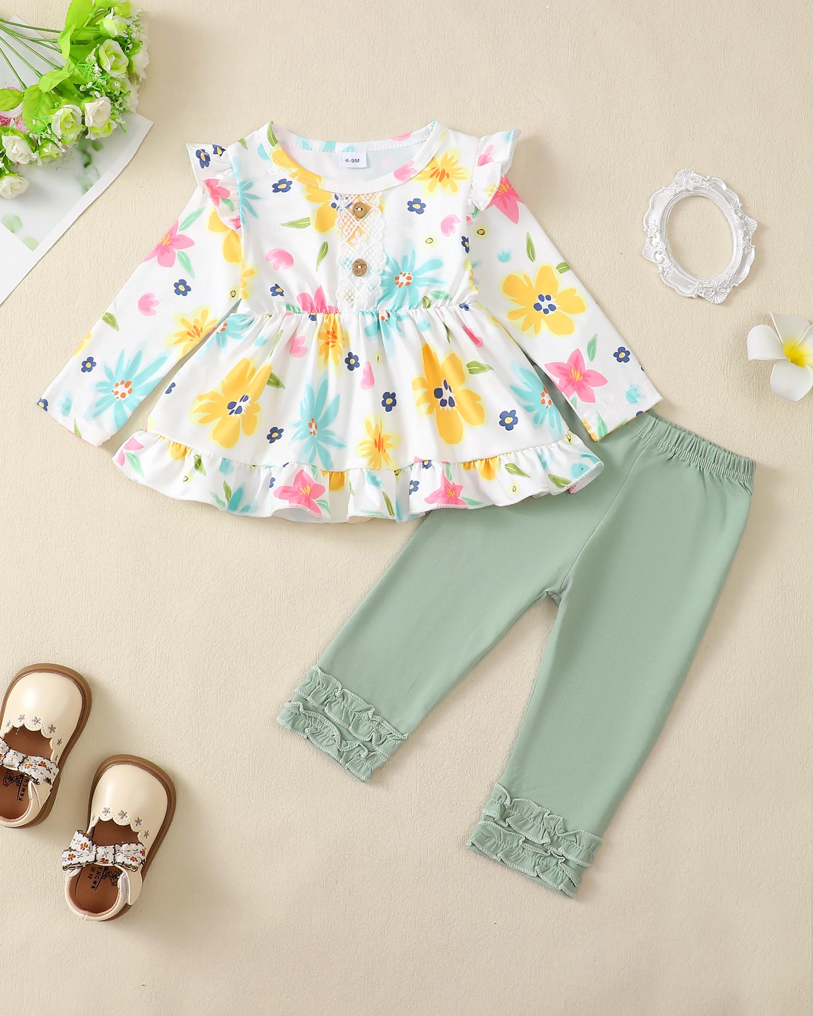 2 Pieces Outfits for Girls : 1*Baby Girl Long Sleeve Shirt +1*Long Pants.