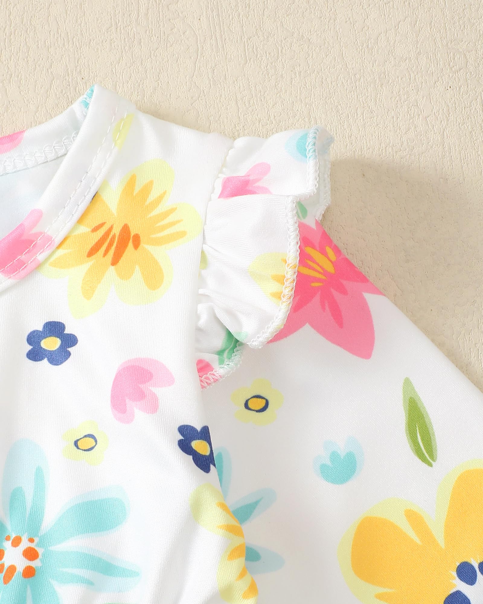 Design: Flower/Leopard/stripe/Solid long sleeve shirt, ruffle hem styles, match with ruffle pant, simple yet cute.