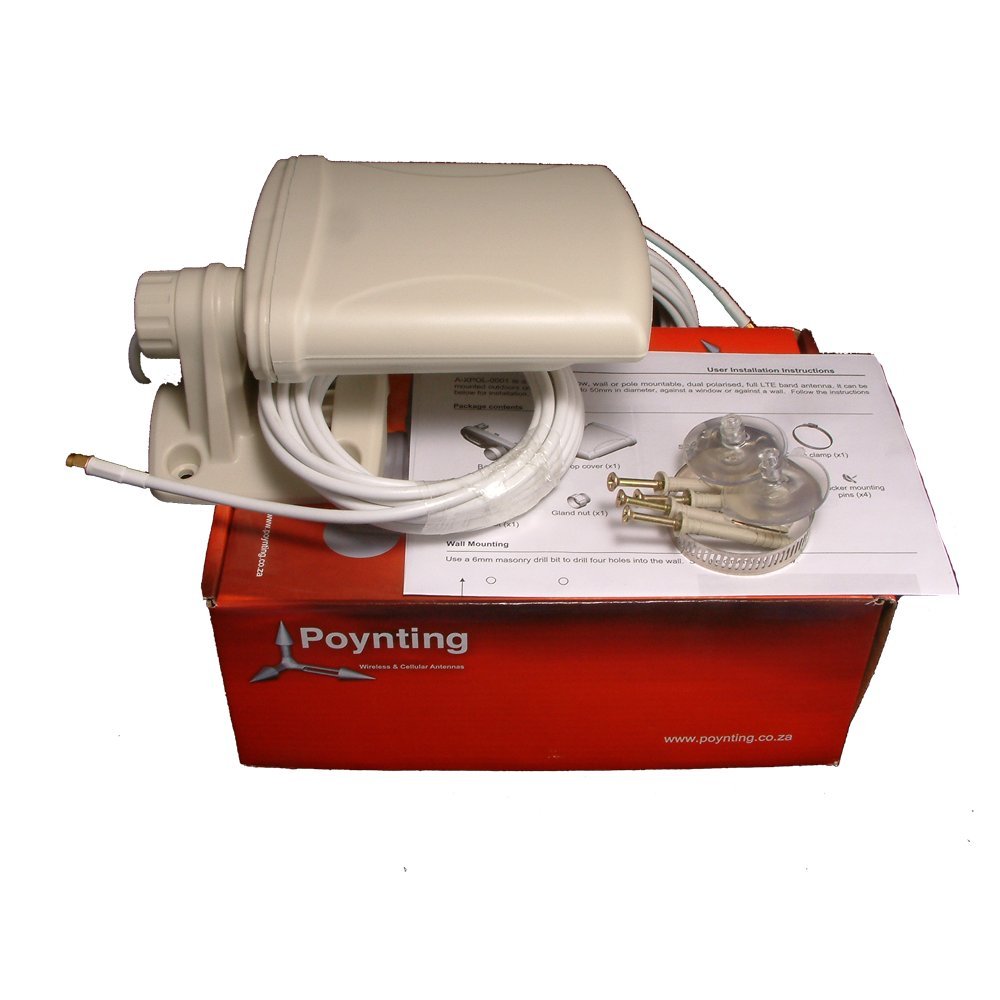 Product Description The XPOL-1, from Poynting, provides an innovative and future proof solution for 4G, 3G and 2G networks. The antenna is designed to be attached to the antenna connectors on your 4G Router. It is a unique window, wall or pole mountable antenna giving you dual polarisation in a full LTE band omnidirectional antenna. Incorporating two separately fed ultra wideband elements in a single housing, the antenna is equipped to provide client side MiMo and diversity support for the networks of today and tomorrow. Gain is min. 2 dBi across all bands: 790 – 960, 1710 – 2170, 2300-2400 and 2500 – 2700 MHz Bands. The weatherproof housing is designed for window, mast and wall mounting. For best operation this antenna should be mounted outdoors or on a window which has clear line of sight to the transmitter mast. The purpose of this antenna is to negate the signal loss due to the walls of the building by placing the antenna OUTSIDE. Optimum results will be obtained by placing the antenna outside, as high as possible and with the best line of sight to the mast. Trying to use this antenna inside will probably not help your signal. The antenna has 2 x 5 metres of low loss cable terminating in SMA Plug connectors. The XPOL-1 is NOT suitable for permanent mounting on a moving vehicle. If you are unsure as to the location of the cell tower the XPOL-1 is a great choice of omni-directional antenna. If you are sure as to where the cell tower is then the directional XPOL-2 is a great alternative to consider. It is worth noting this antenna is not suitable for the new 1400MHz channels being provided by Three. This antenna is designed to be used with a router however the router is not included. Set Contains: Poynting 4G-XPOL-A0001 Cross Polarised 4G Omni LTE Antenna
