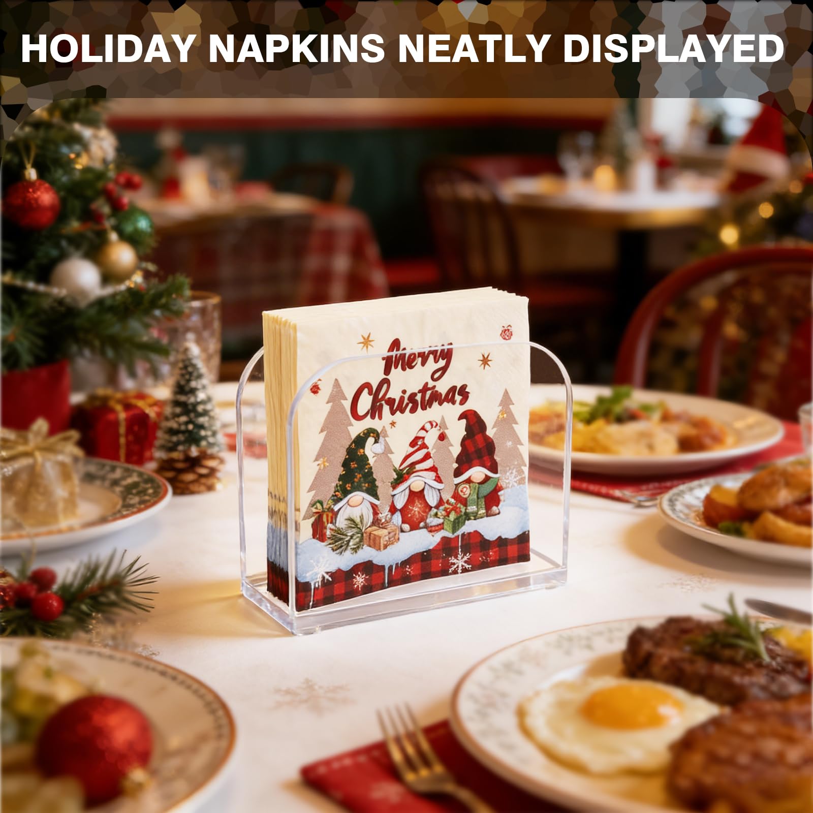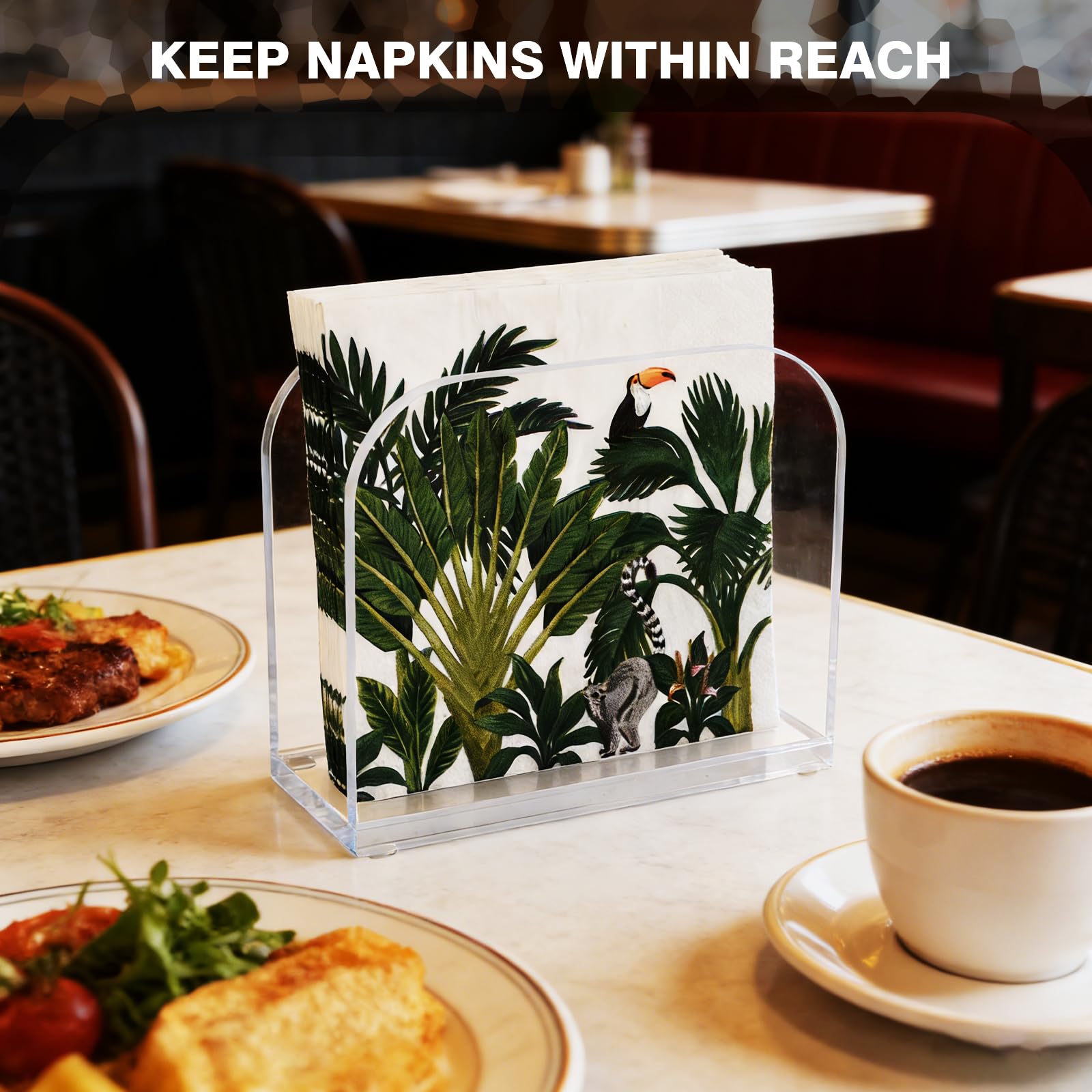 💧【TRANPARENT&ANTI-SLIP FUNCTION】The transparent bar napkin holder keeps contents visible and features four anti-slip pads to stay steady on smooth surfaces.