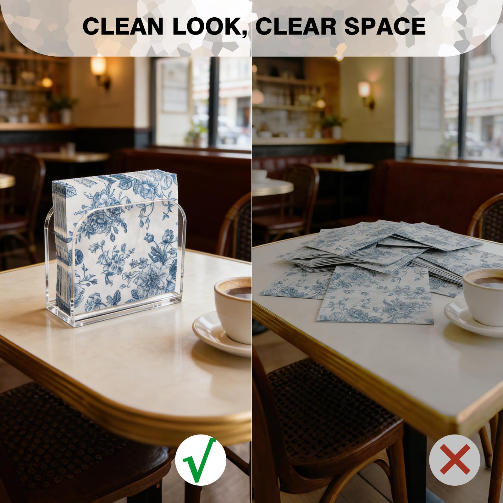 💧【SPACE SAVING】This napkin holder stands upright to save counter space and fits easily into small corners for neat daily organization.