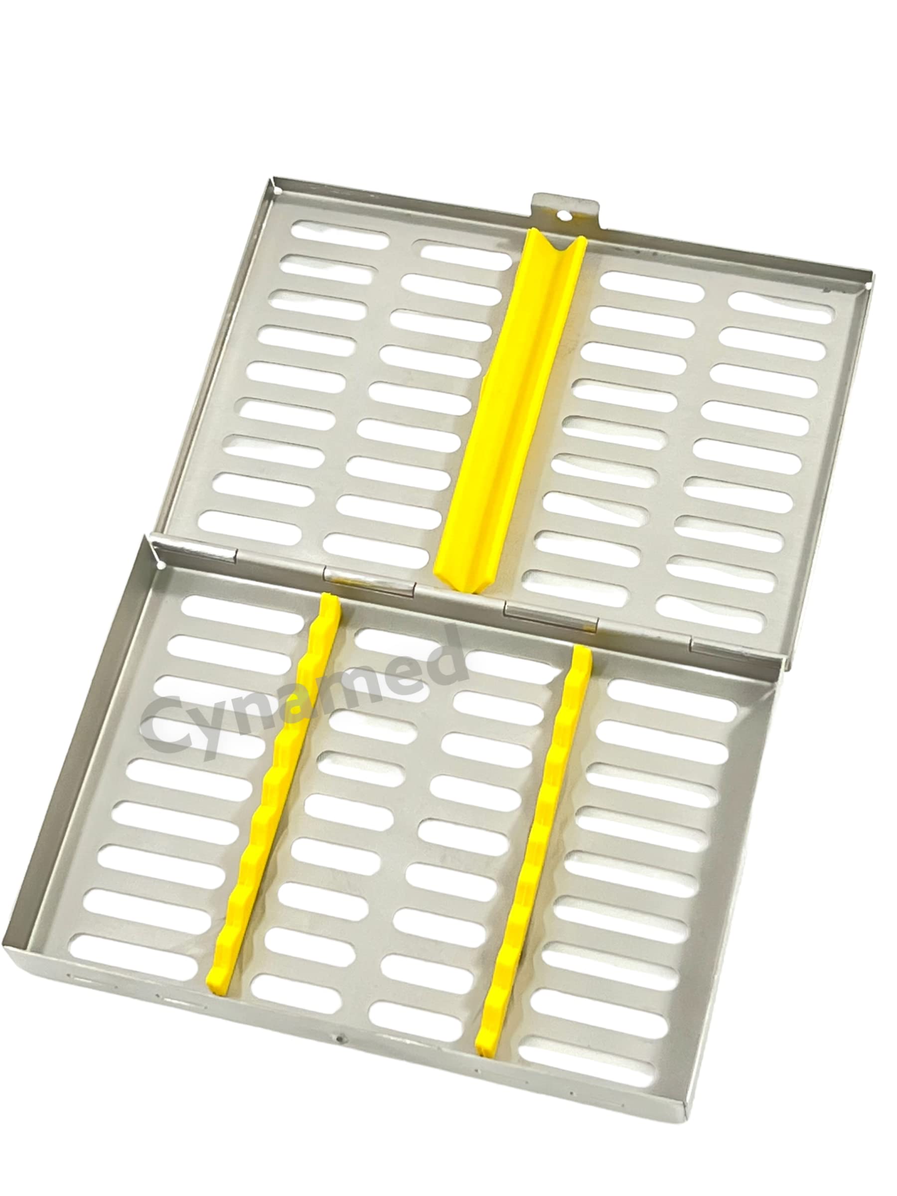 EXCELLENT QUALITY GERMAN STEEL NEW Premium German Dental Sterilization Cassette Rack Tray Box for 10 Dental Instruments Retail Value >199 USD! ASTM STANDARD 304 TYPE STAINLESS BRAND CYNAMED USA High quality Medical Standard German Steel and Medical Grade Silicone Racks. The silicone racks can be taken out for cleaning. Autoclavebale and Sterilizable. Holds 10 Instruments. Detachable and lockable design, easy to clean Dimension: 7.25" L X 5"W X 0.75" H