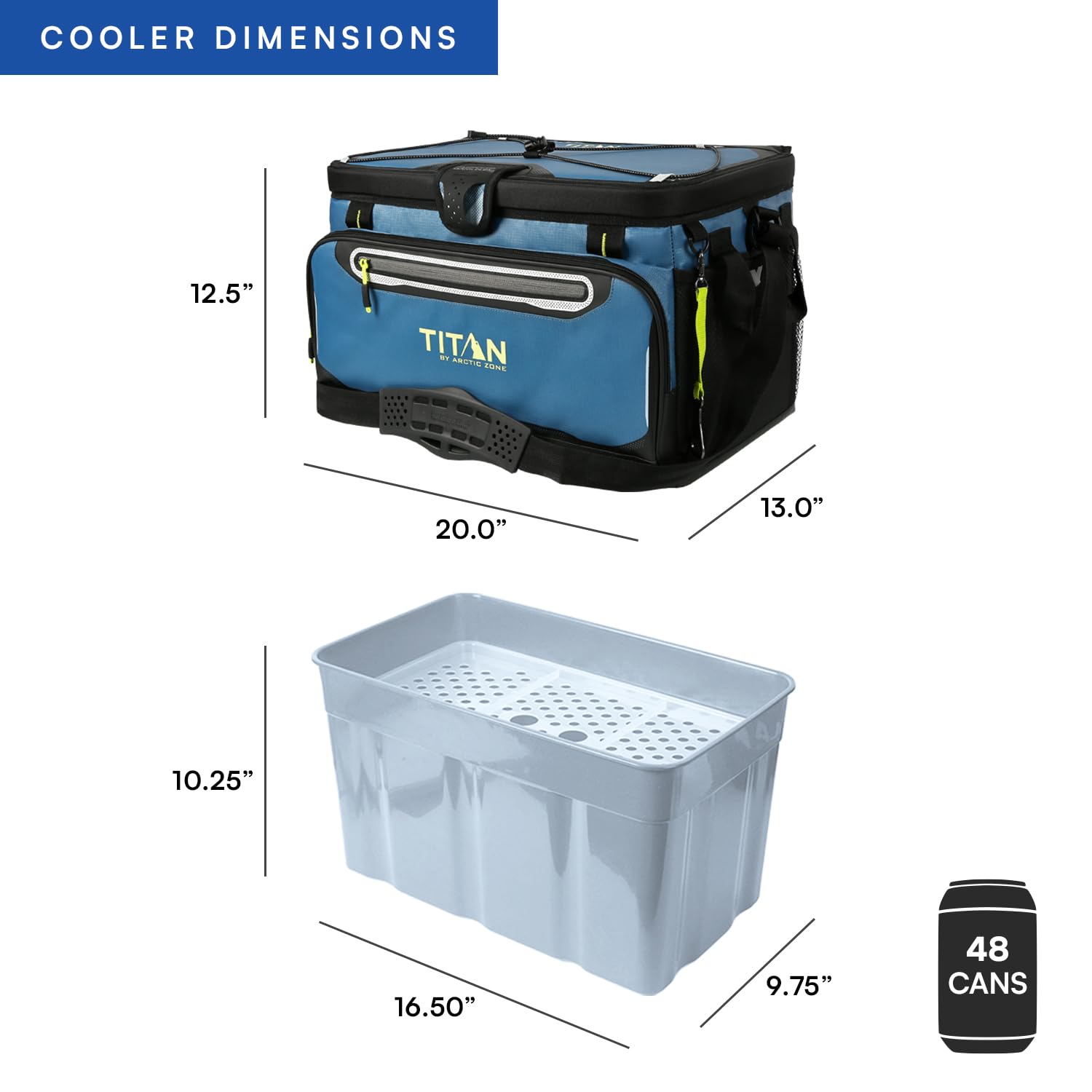 48 CAN CAPCITY: Soft side cooler measures 12.5 x 20 x 13 inches with a 48 can capacity; suitable for packing food and beverages for camping trips, beach days, tailgates, family picnics, and other group outings