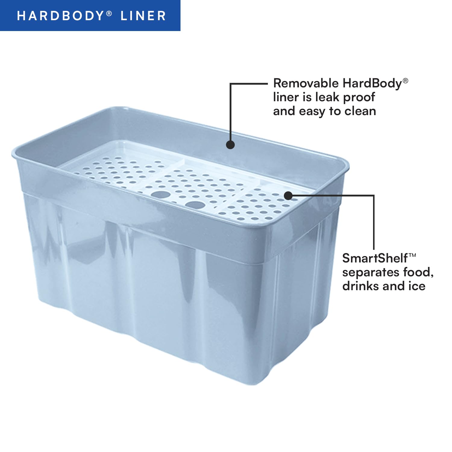 HARDBODY LINER WITH SMARTSHELF: Includes a removable HardBody liner with SmartShelf that allows you to separate hard items from soft so sandwiches and other soft foods don't get crushed; SmartShelf easily removes for extra space