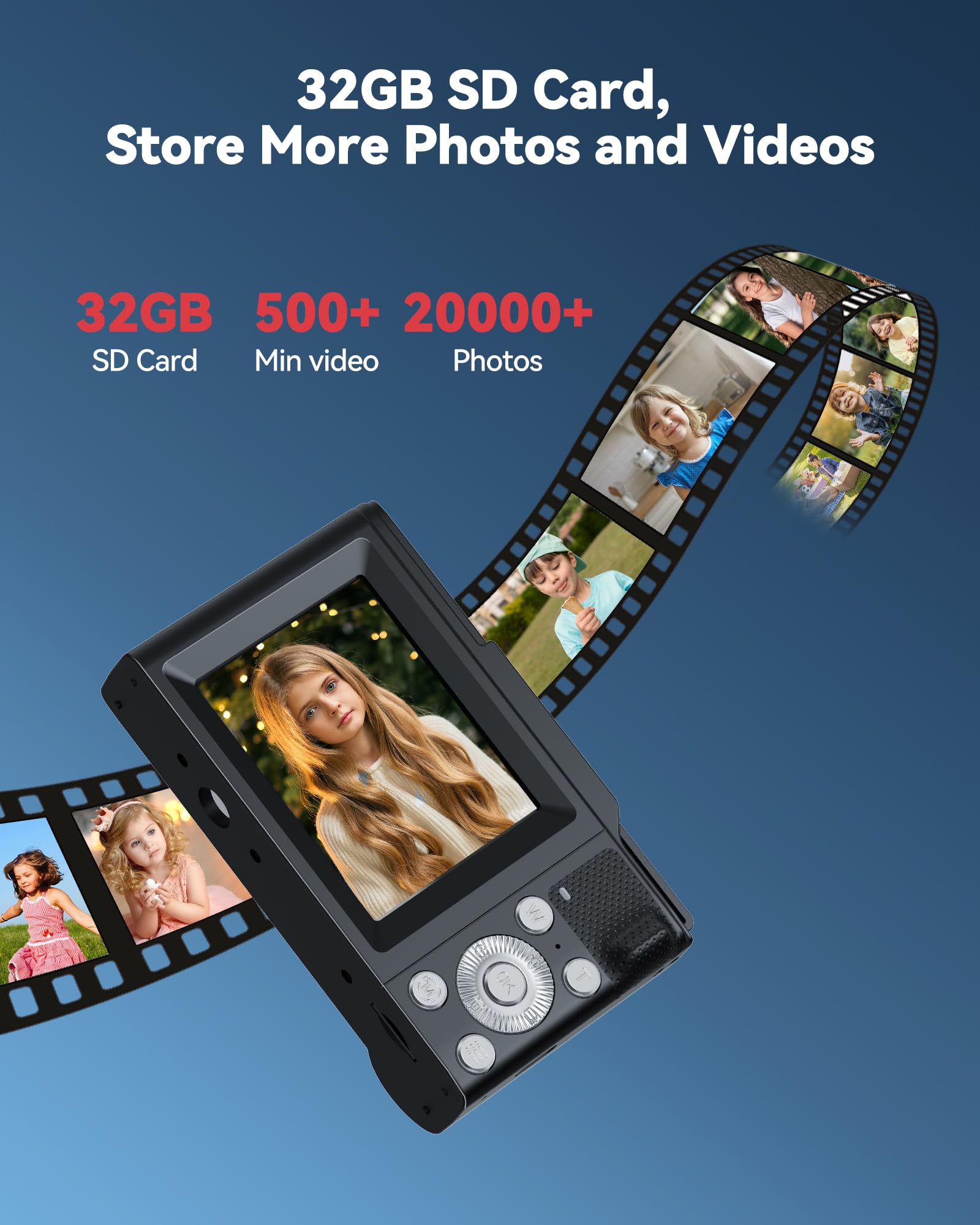 MINI & LONG BATTERY LIFE: This camera for kids is compact and easy to carry. Children can easily put it in a backpack or pocket to capture the beautiful moments in life at any time. Equipped with a high-efficiency battery to ensure long-term shooting, so that children can enjoy the fun of taking pictures whether in outdoor adventures or family gatherings, without frequent charging, and enjoy recording every wonderful moment.