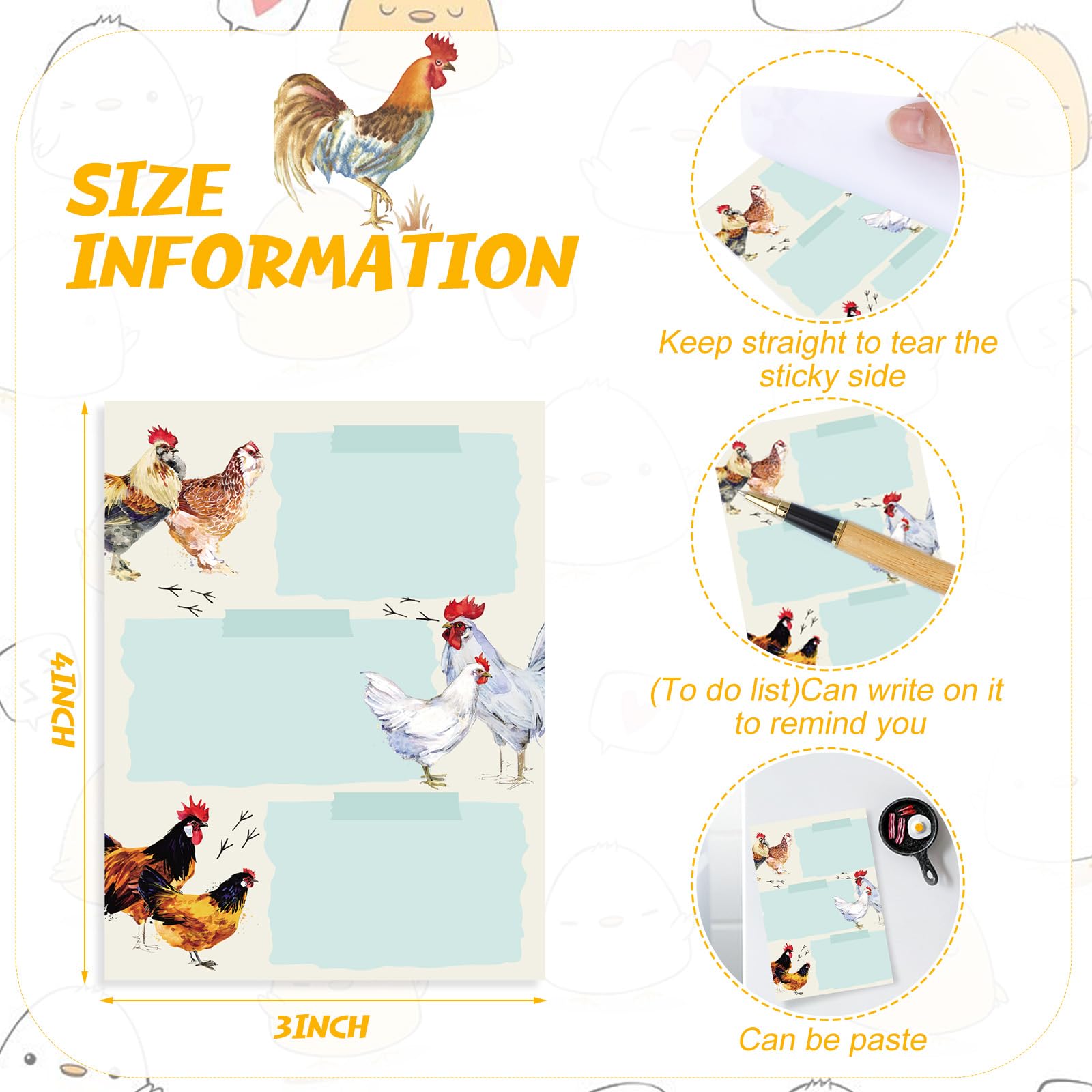Reliable Material: these chicken self adhesive notepads are made of paper material, with a smooth writing surface, not easy to tear and break, beautiful printing colors, not easy to fade, and can serve you for a long time