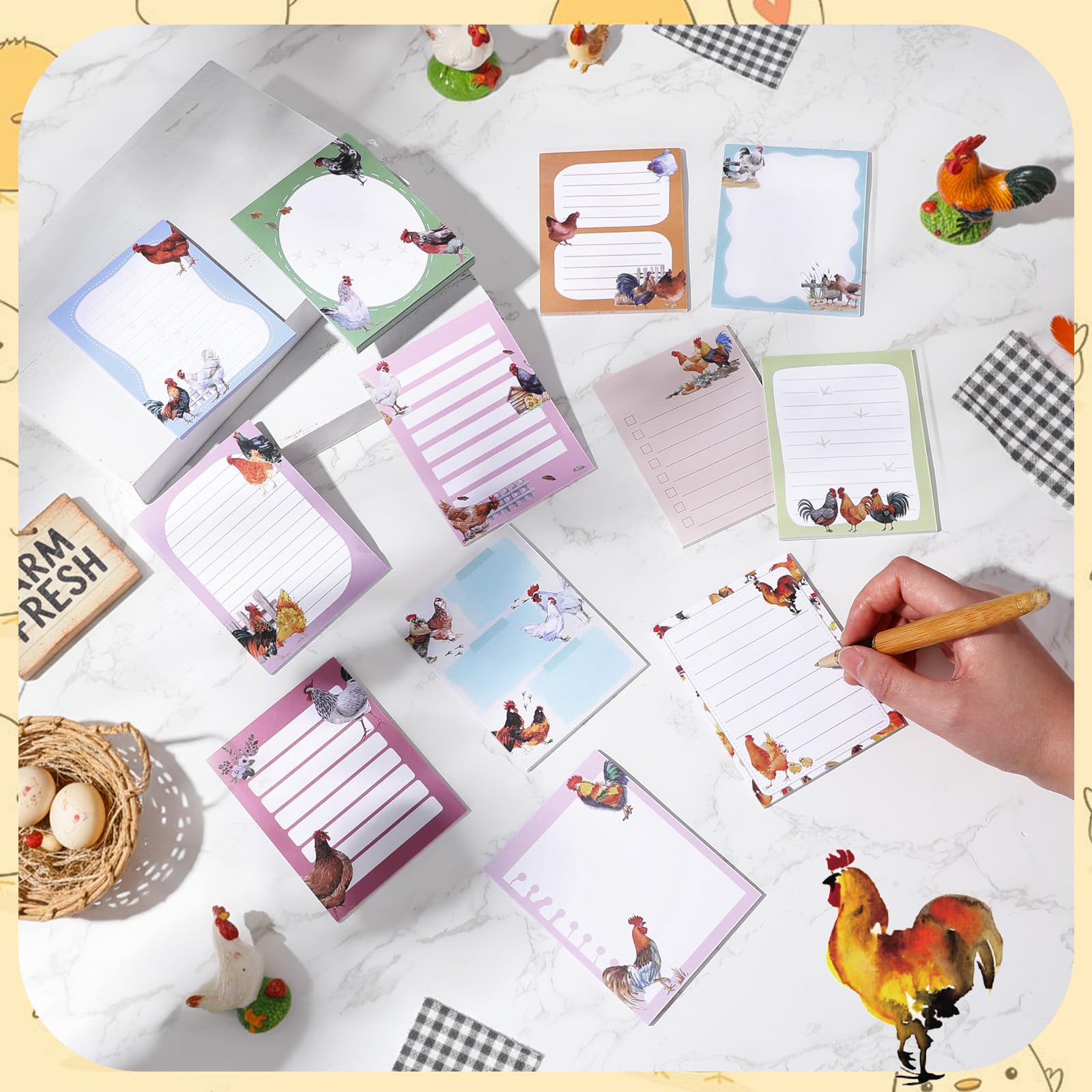 Exquisite Design: the chicken sticky note is printed with cute rooster, hen and chick patterns, which is cute and interesting, and you can give it to your friends and family