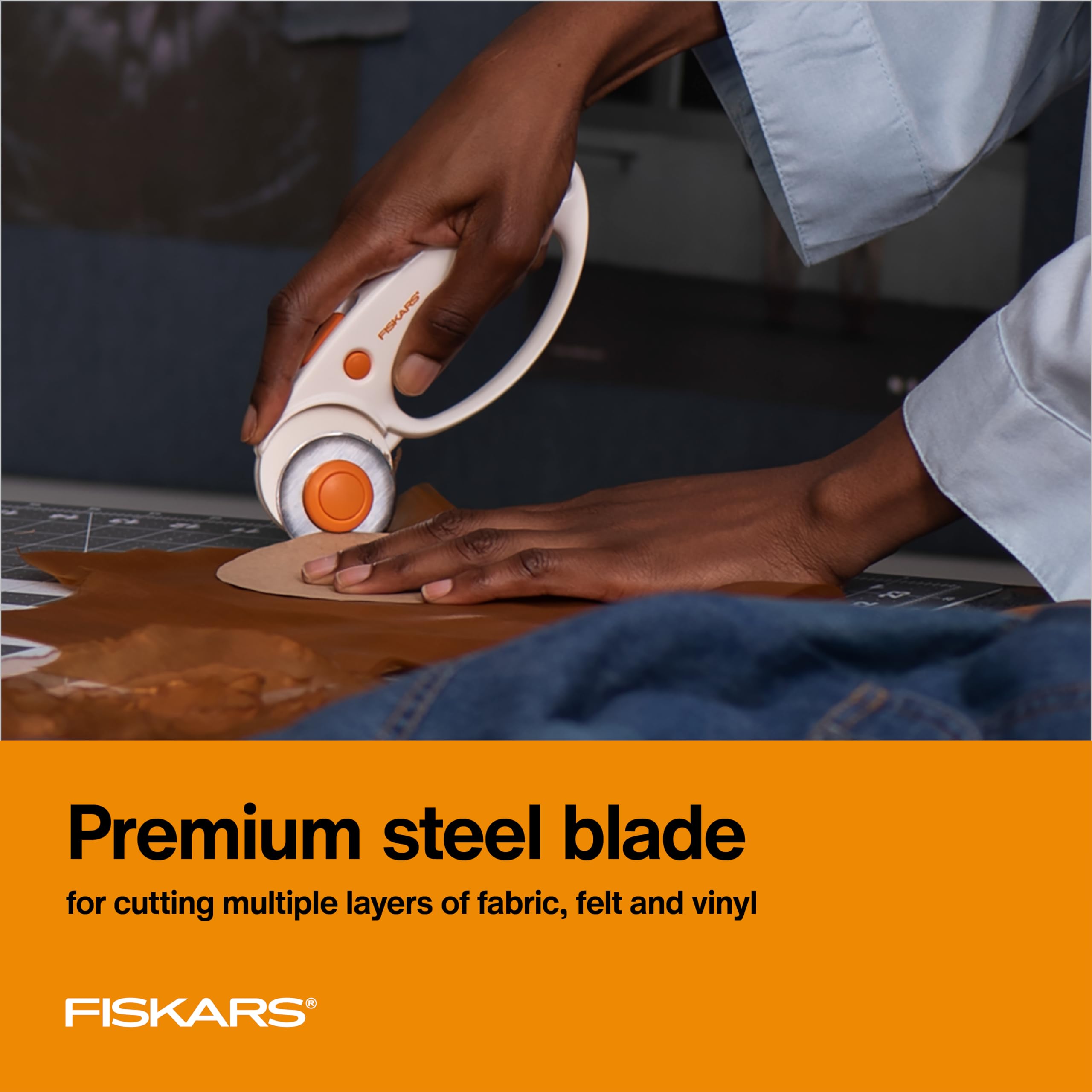 PRECISION ART SUPPLIES: Precision-ground, 45mm rotary blade is perfect for projects and fabric that require precise cutting of materials; Pair with Fiskars Self-Healing Cutting Mat to protect your work surfaces
