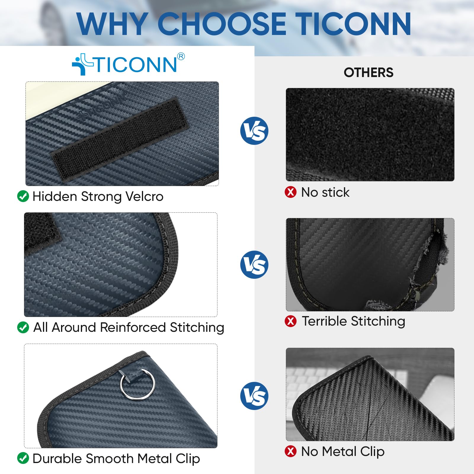 Why You May Need One: Get your car protected; TICONN faraday bag provides a complete signal blocker for your vehicle key fob; This prevents thieves from picking up and relaying signals from your key, to shield against break-ins and keyless ignition theft