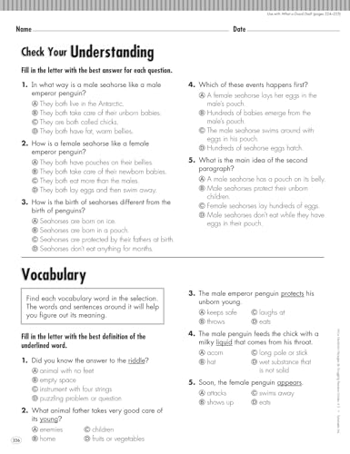 Reproducible passages, grouped by reading strategies, come with test-formatted questions Motivate reluctant readers with this collection of easy-to-read passages that cover a wide range of high-interest topics. Grouped according to the key reading strategies they reinforce, each reproducible passage comes with test-formatted comprehension and vocabulary questions, as well as writing activities. A great supplement to your reading program! For use with Grades 4-5.