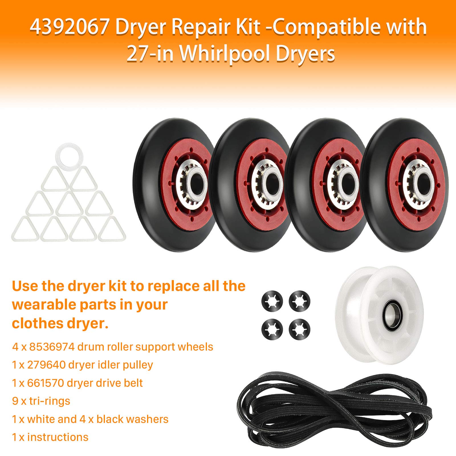 [FIX YOUR DRYER PROBLEMS]: 4392067 dryer repair kit includes all parts to fix your may.tag dryer problems like noisy; will not tumble; leave mark on clothes; will not start etc