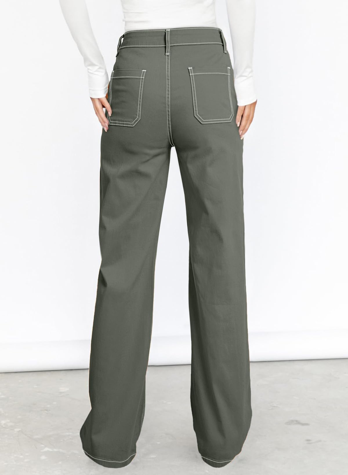 Feature: cargo jeans, mid waist, straight-leg jeans, button and zipper fly closure, straight wide leg style, four pockets, denim jeans for women.