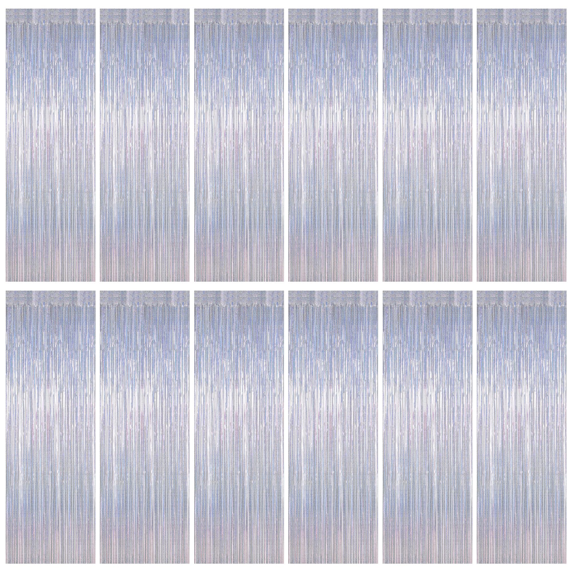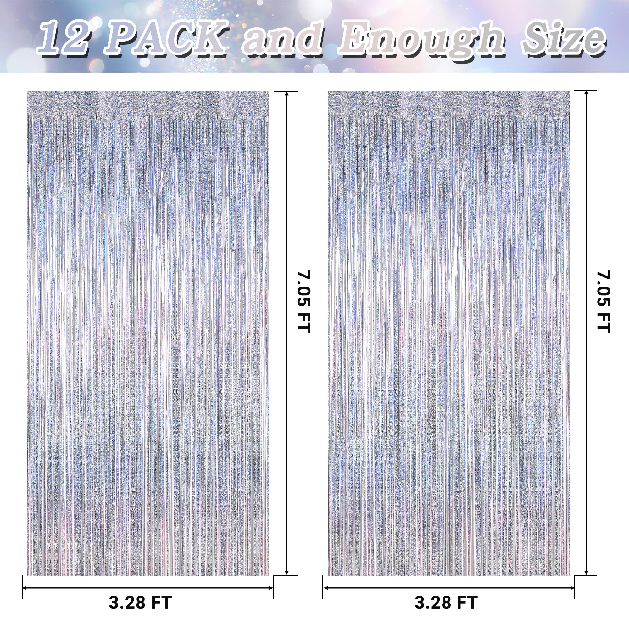 Package Includes: This set contains 12 pack glitter silver foil curtains, each measuring 3.28 x 7.05 feet, oversized design, can be cut to fit length as needed.