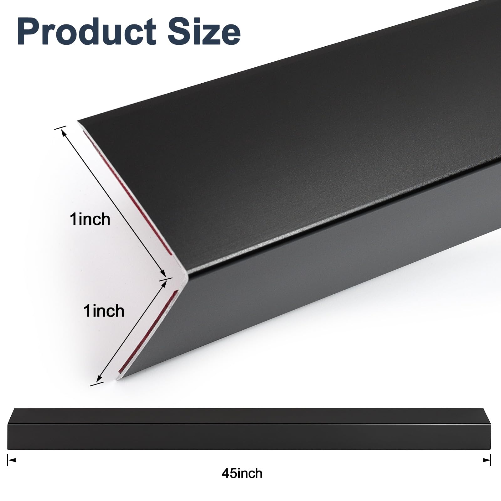 Jiekayi 4PCS 45" Black Metal Corner Protectors, Aluminum Self Adhesive Corner Guards, Metal Wall Edge Protector Strip, Furniture Corner Protectors, Wall Cabinet Baseboard Decoration 45" x 1"