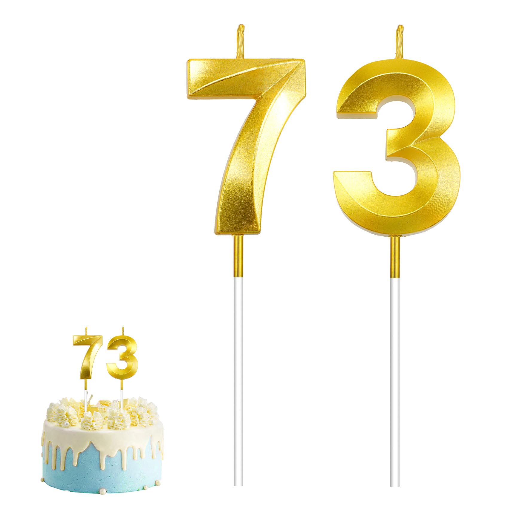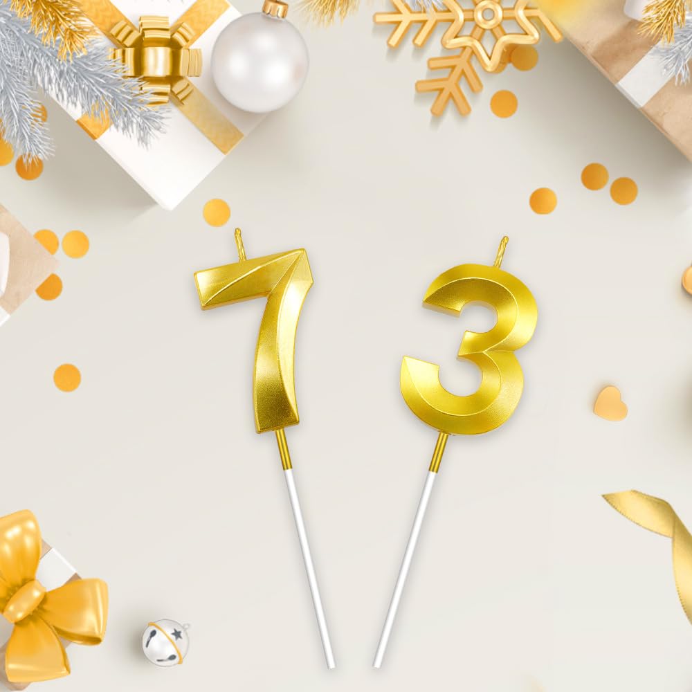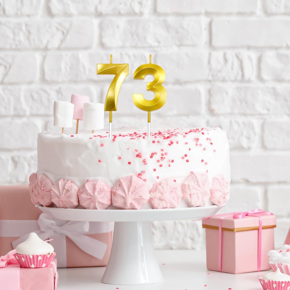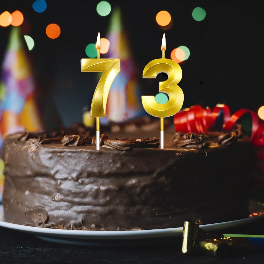 Widely applicable: The '73' number candle set is the ideal decoration for cakes or cupcakes at a variety of celebrations, adding a memorable touch to your special moments. Whether honoring grandparents and loved ones for their remarkable 73 years of life, celebrating a company's 73rd anniversary, or marking any other meaningful occasion tied to the numbers 73 or 37 - it's the perfect accent piece. 73rd birthday candles for men, 37th birthday cake topper, 37th birthday candles gold.