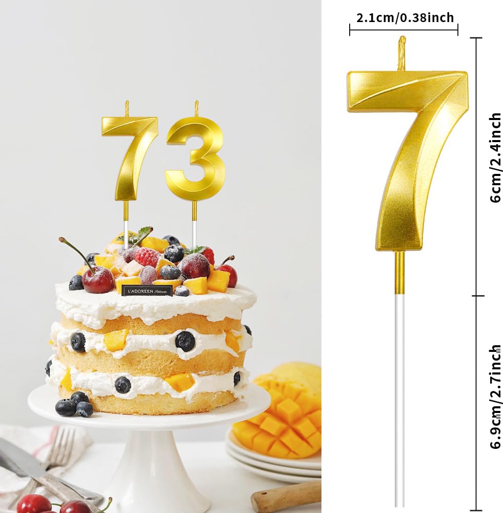 Candle Dimensions: Each birthday candle measures approximately 5 cm (1.97 inches) in height, with a total length of 11.5 cm (4.53 inches) including the spike. This classic gold candle features a suitable size that serves as an ideal topper for birthday cakes, anniversary cakes, and wedding cakes. Elegant and versatile, it fits any theme and sparkles up your centerpiece cake. 73rd birthday candles for cake, 37th birthday candles for cake, 73rd birthday candles for women, 73rd birthday.