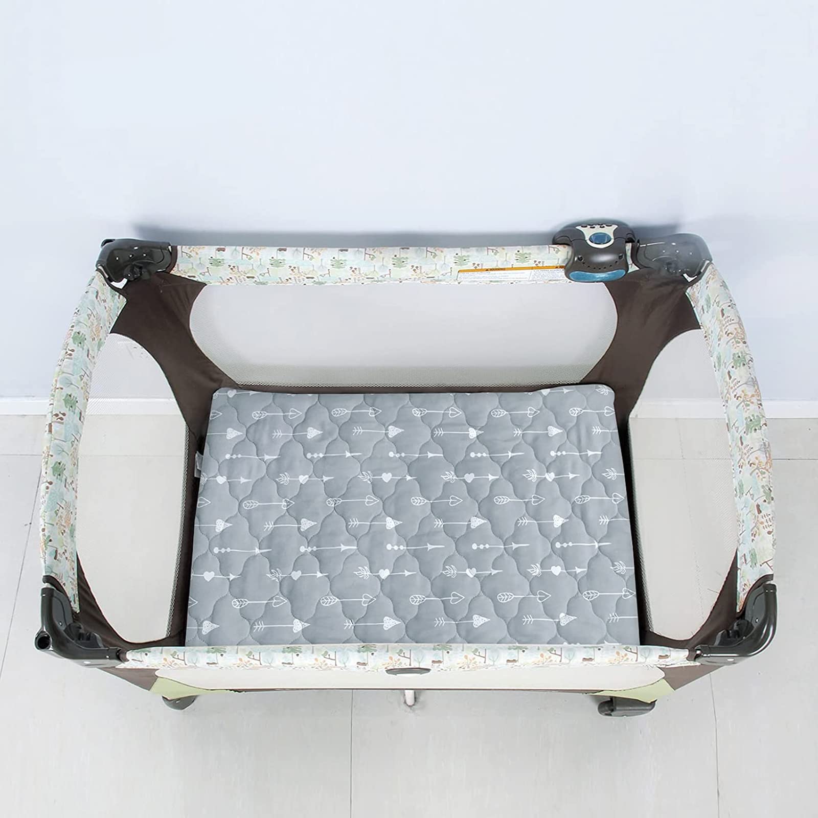 Mini crib protector(27 in x 39 in): Fitted Sheet Style up to 5'' deep fitted stretch skirt made of elasticized fabric that will securely compatible with graco pack n play, dream on me mattress (3" to 5") or all other mini and portable crib mattress 38" x 24"..