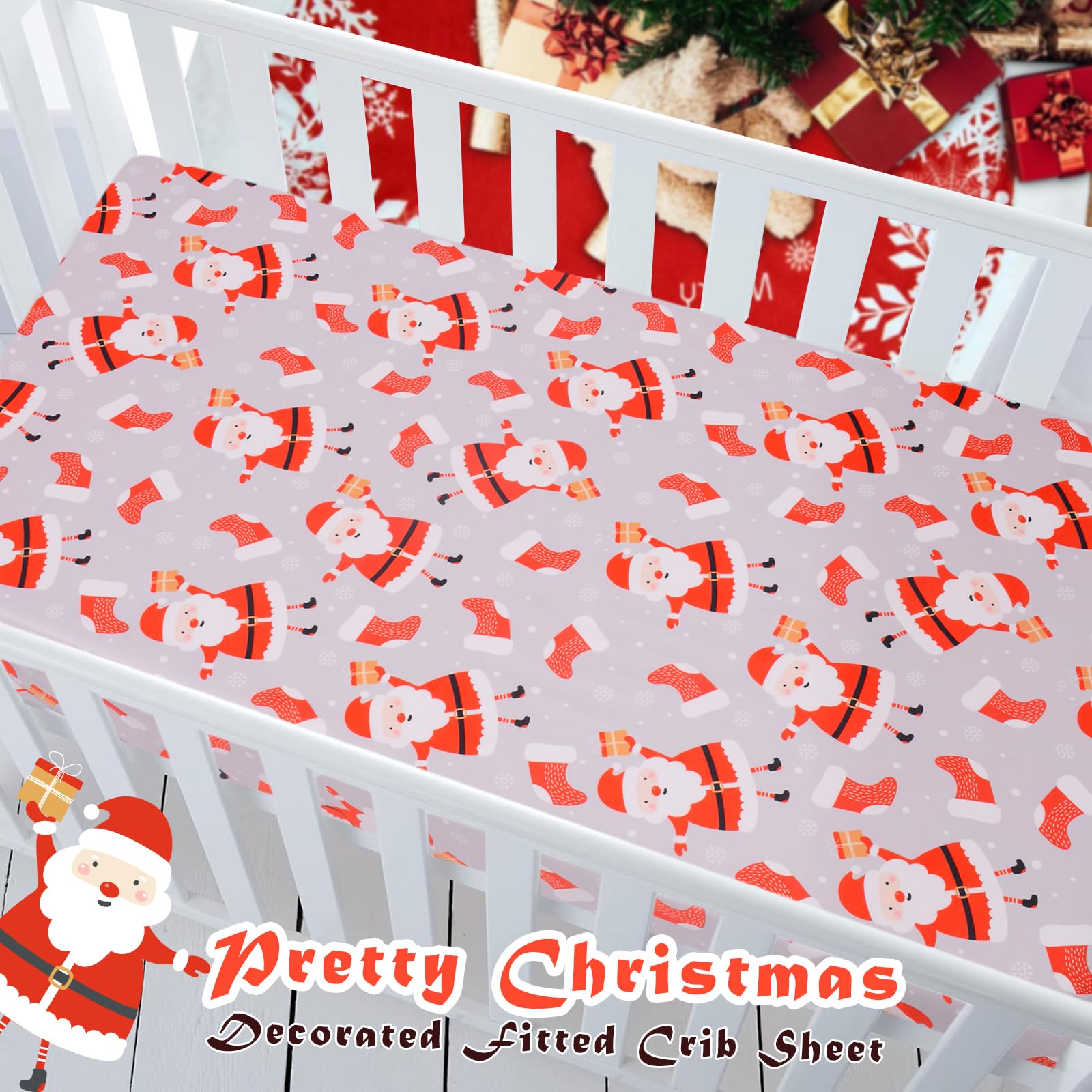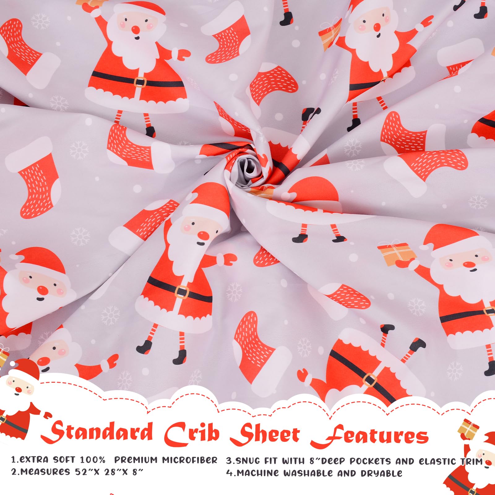 【Enchanting Christmas Magic】Immerse your little one in the joy of the holiday season! Our crib sheets feature charming festivities designs including Santa Claus, Christmas Trees, Bells, Candy Canes, and Gingerbread Men, crafting a magical Christmas ambience for your baby to enjoy.
