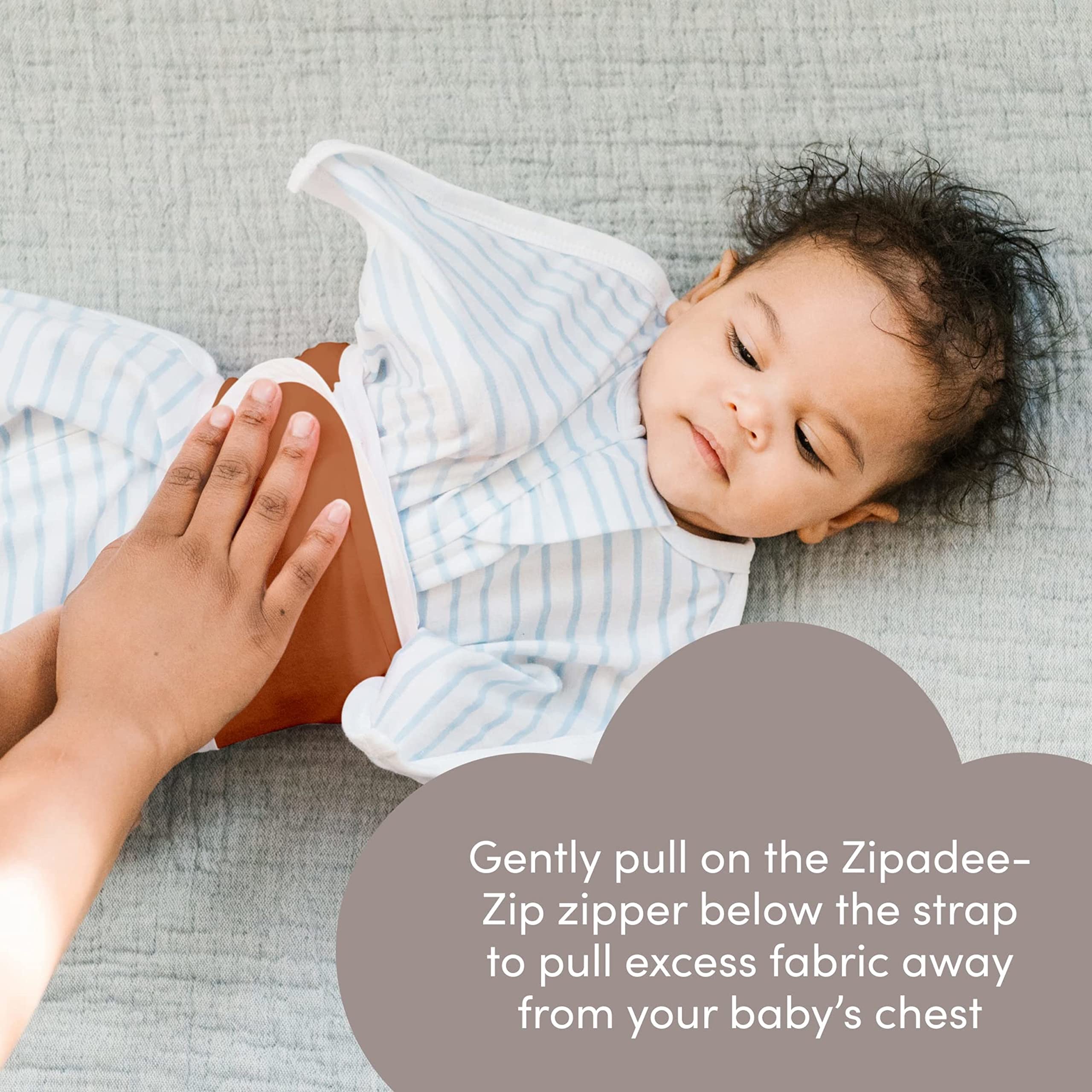 Easy to use: Unlike muslin swaddle blankets or other complicated baby wraps, our swaddle wrap are easy to use. Simply place your baby in the Zipadee-Zip and wrap the Snuggle Strap around your baby. The fastener must be snug when closed. Never use if a baby can remove the Snuggle Strap over their arms. It is intended to be worn as a belt under the arms