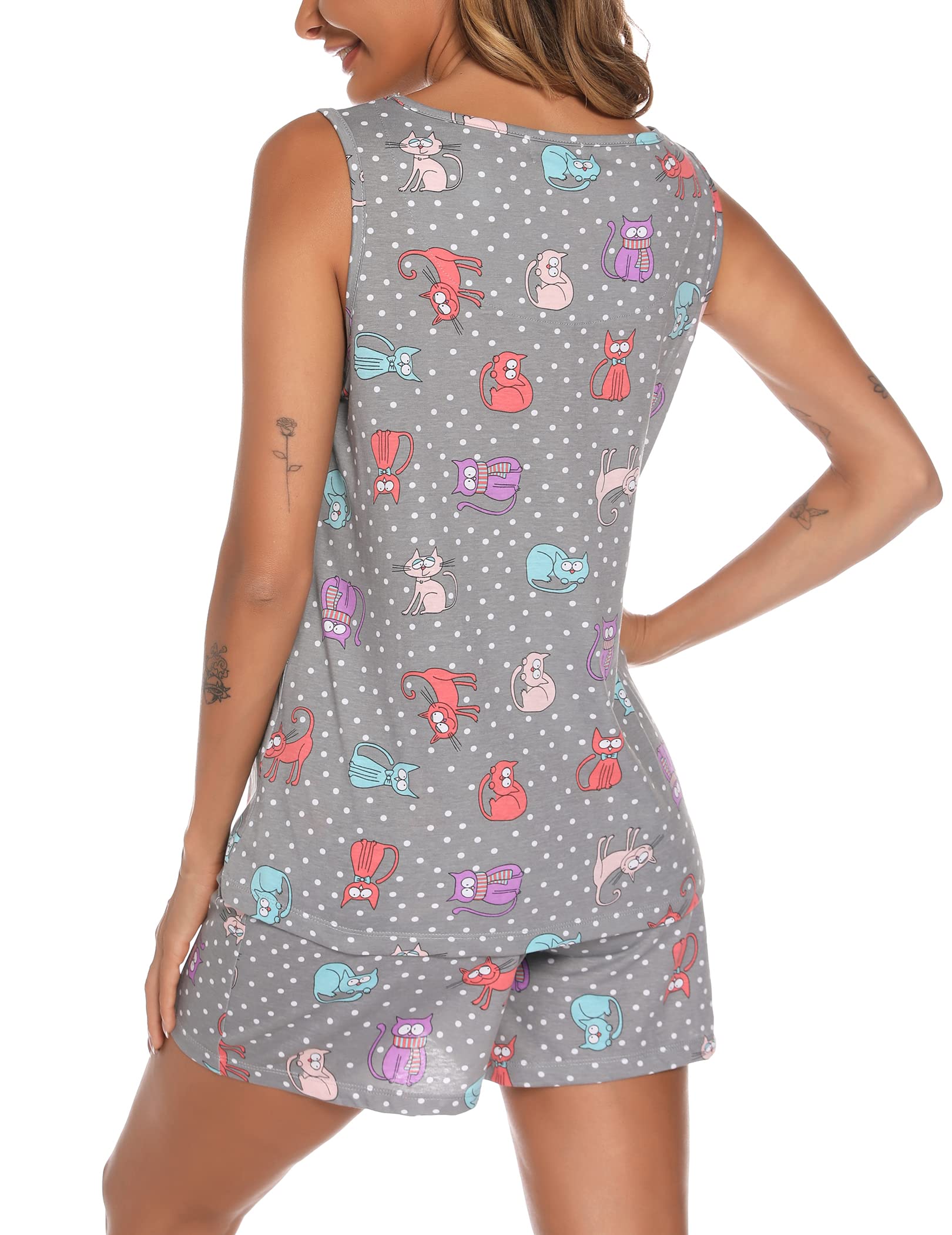 Classic Design: Women's sleeveless round-collar printed pajama, with drawstring elastic shorts, let you relax and comfortable, this sleep tops design with sexy sleeveless, fully show the charm of women. Our pajama has a variety of cute cartoon prints, suitable for different age groups, making you look more younger