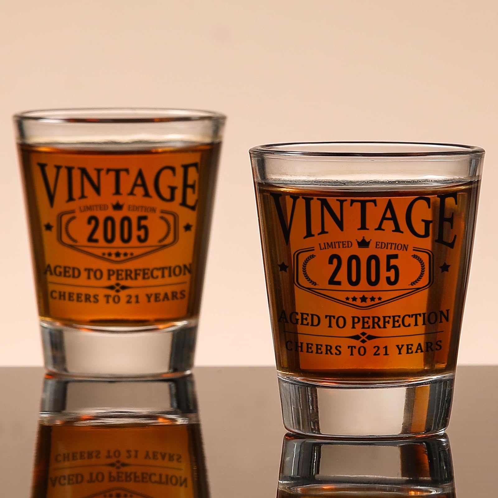 Unique Limited Edition Logo - Allr parts are printed with pattern (refer to the images). Especially the milestone shot glass cup, the unique '2005' sign represents the 21st birthday or 21st anniversary day. Great gift ideas for your friends, boyfriend, classmate, brother, son or any other male or female who is 21 or turning 21 years old.