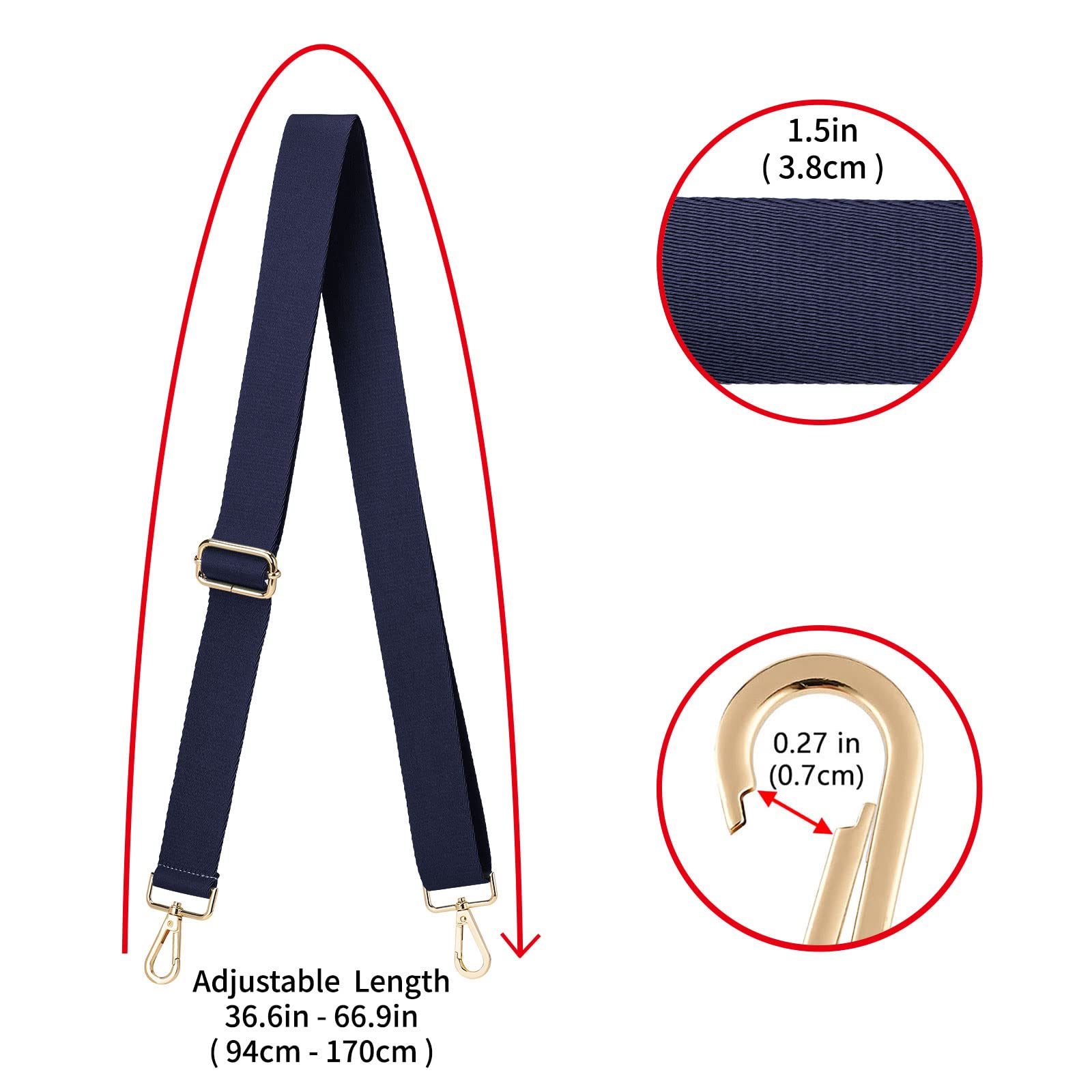 ★Adjustable - Adjustable length(including snap hooks): 36.6"~66.9"(94cm-170cm), it is long enough to wear on the shoulder or cross body, use it as a decorative accessories for your bag also a good choice.