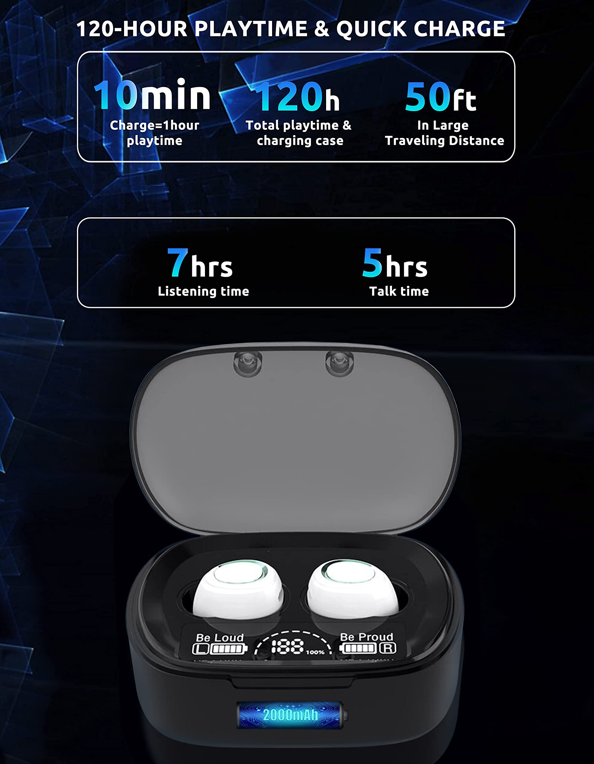⚡【COOL LED SCREEN】 : Simple, Easy to Read Bluetooth LED display will clearly show the accurate power level of the charging box and the earphone, this way you can better arrange the future management of the headset, and will not worry about the earplugs without power/electricity.