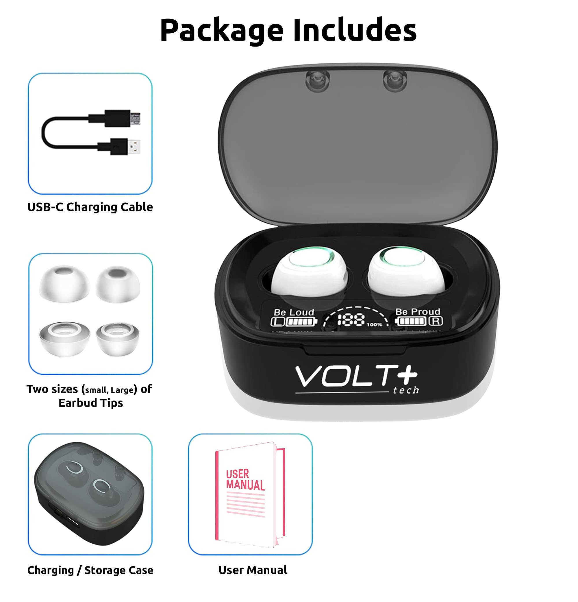 ⚡【WHAT DO YOU GET?】: You will get a Portable Bluetooth Volt Plus Tech Version TWS earphone with a Power Bank/Pack Storage Digital Display box, and the case that can re-charge for 36 Hours on the headset/earphones at any time, making travel and sports more exciting. Can be used as a gift for your family and friends.