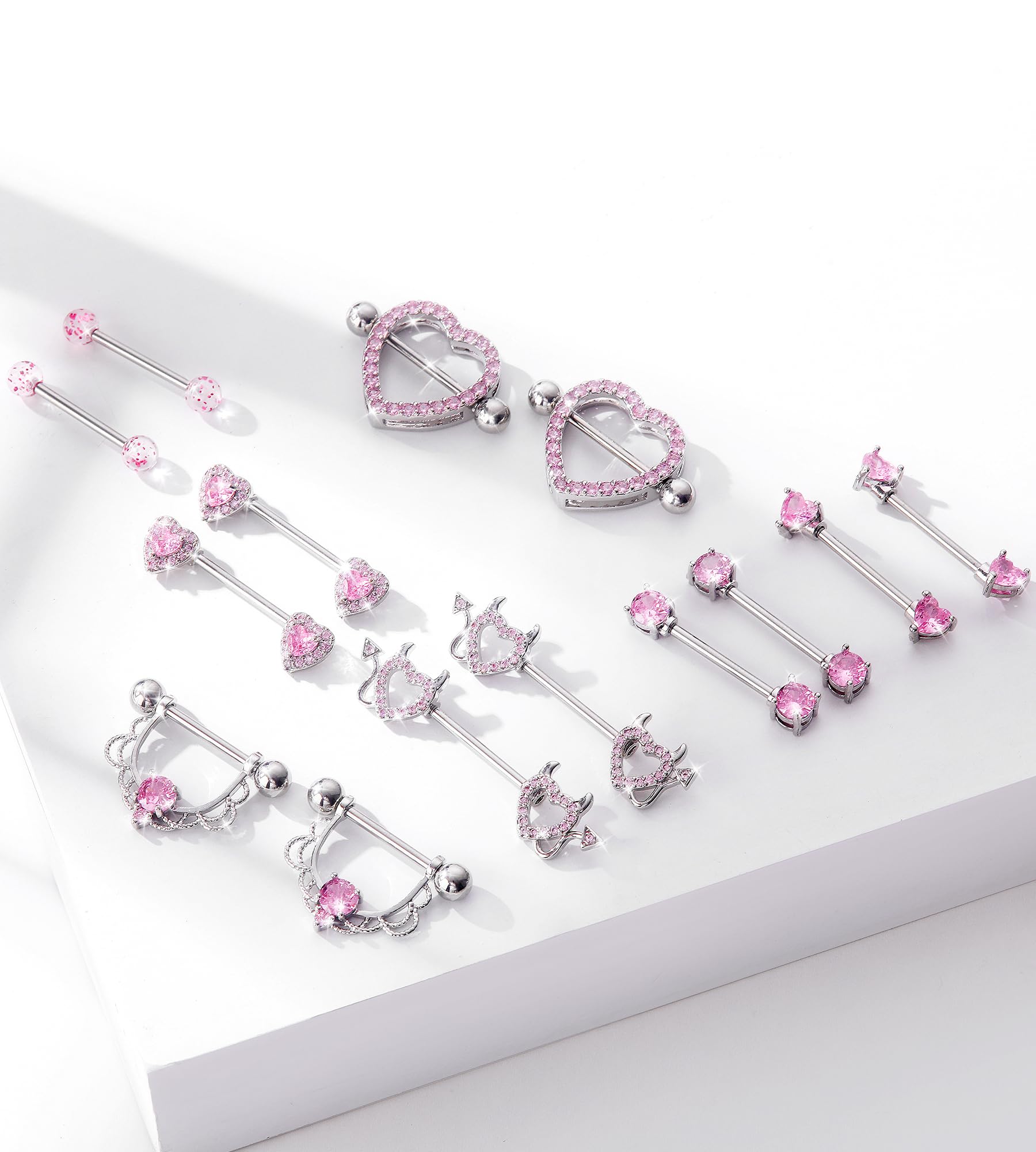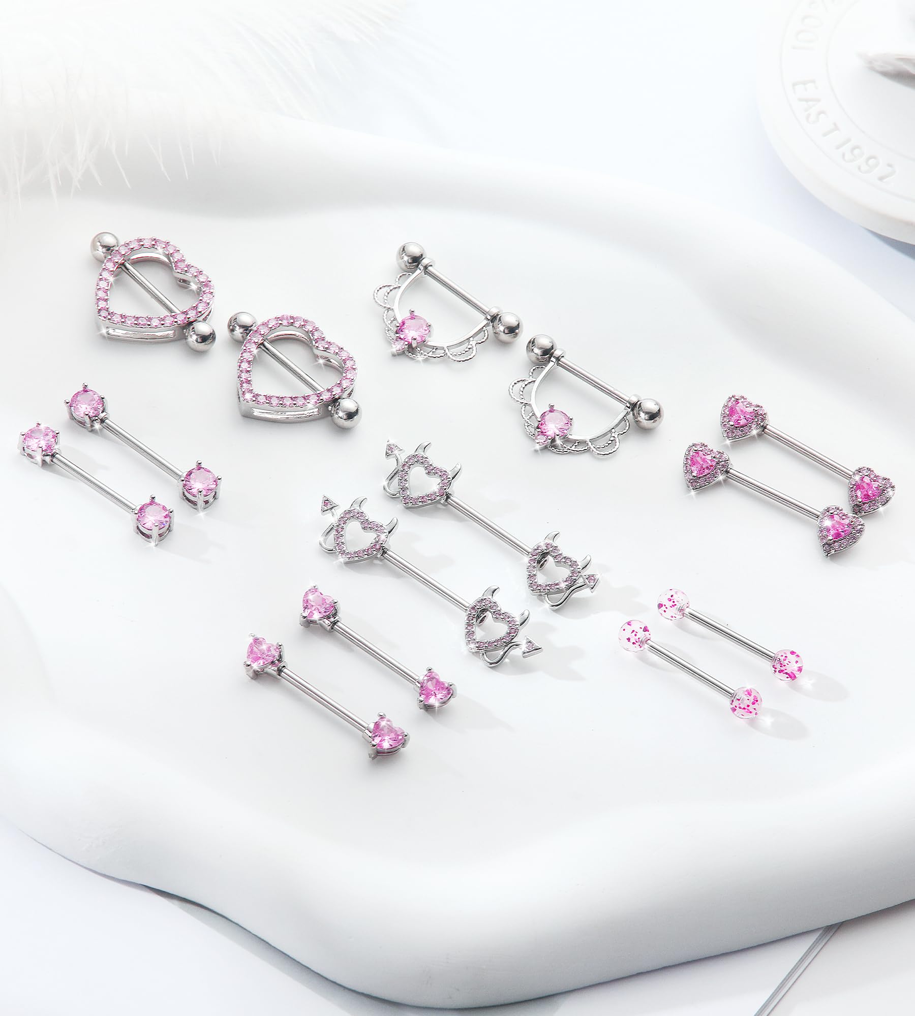 Nipple Piercing Jewelry Set: Nipple rings pack includes 7 pairs of stylish nipple piercings with diverse designs: heart, devil heart, cubic zirconia, ball. Mix and match to express your mood and style, creating a versatile foundation for your body jewelry collection