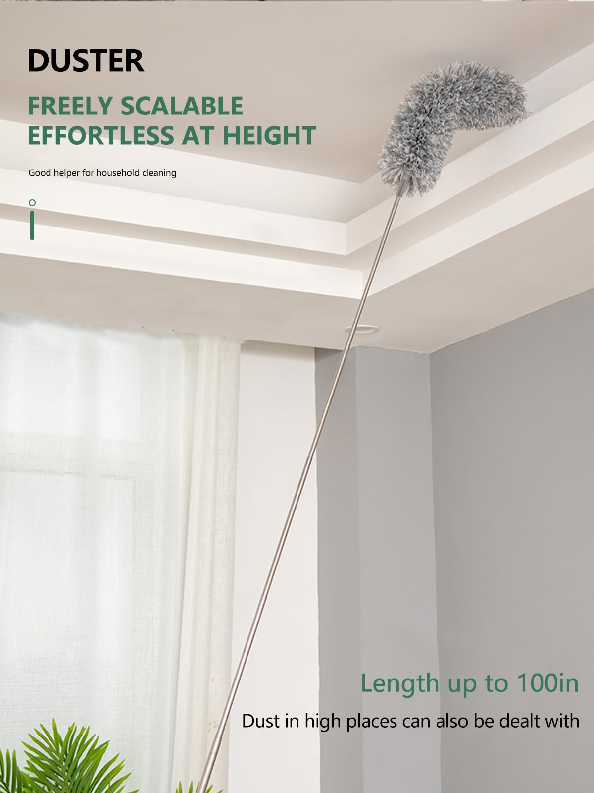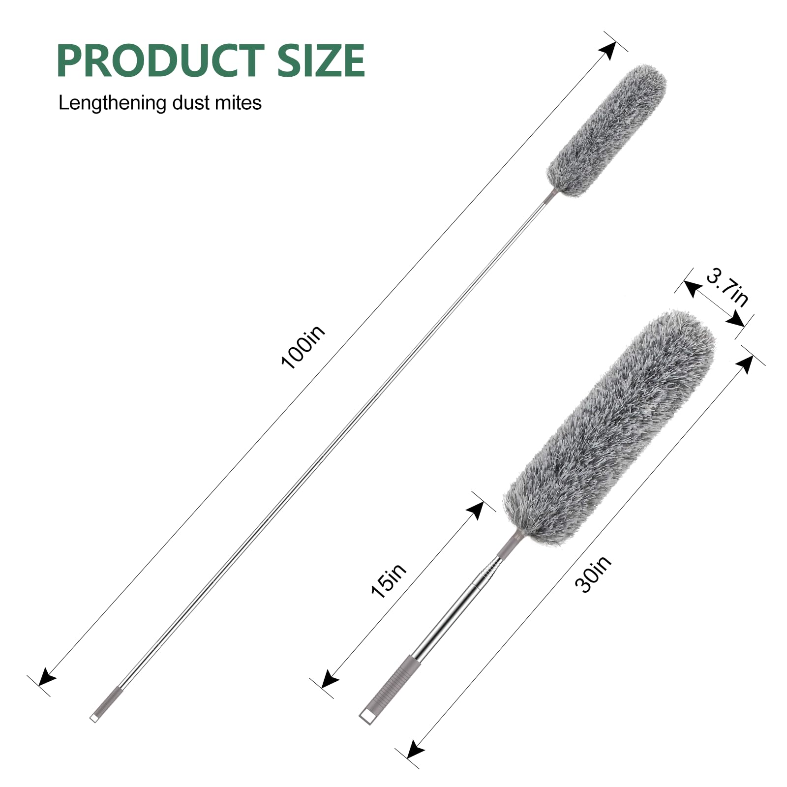 EXTENDABLE DUSTER: Our telescoping duster pole is made with stainless steel, and can be extended from 30" to 100". You can extend the high duster to the length you need and do the cleaning jobs of different heights.