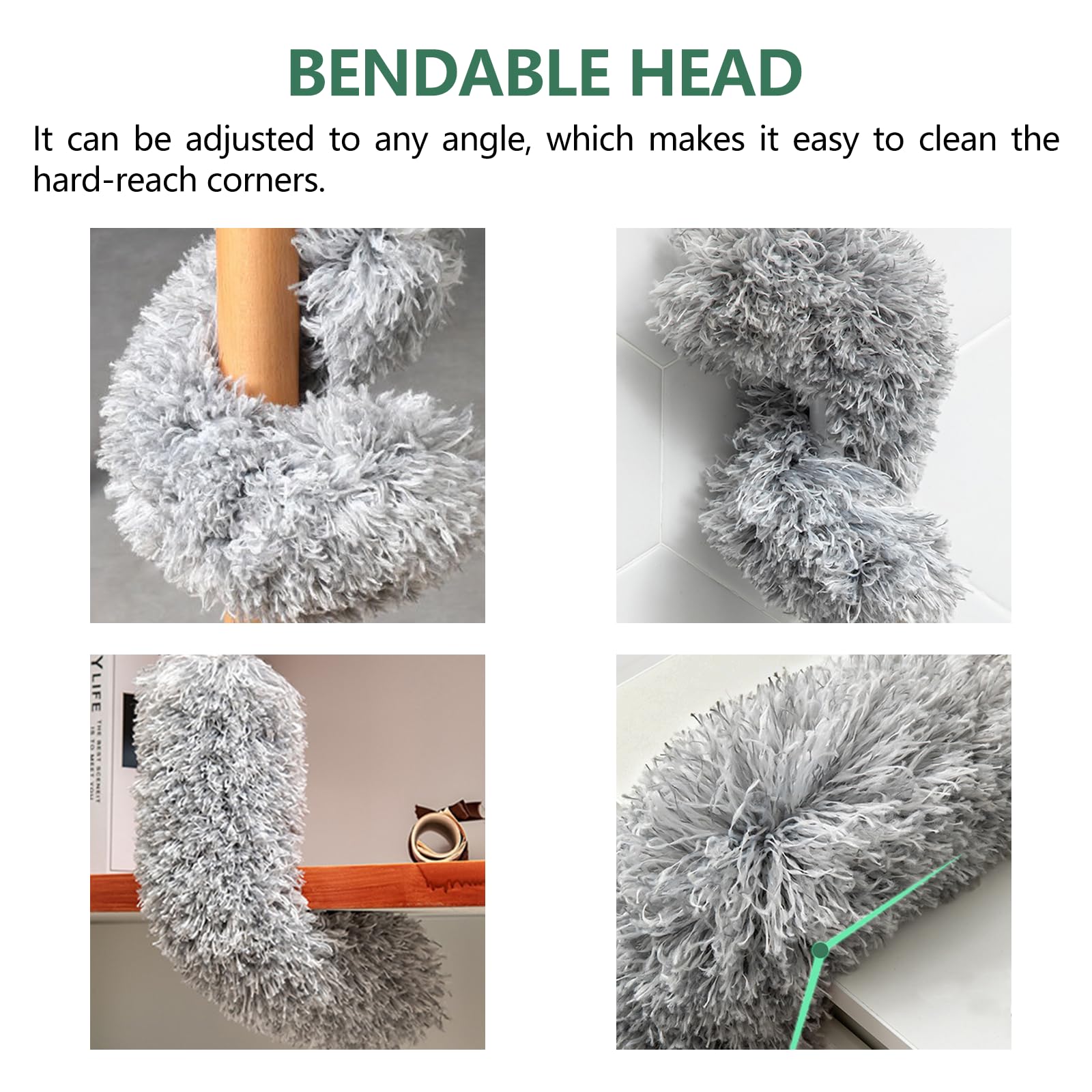 BENDABLE FOR CLEANING: The duster head is flexible to bent into various angles that can clean hard-to-reach. And It has a wide use in cleaning household appliances, ceiling, window blinds, ceiling fans, various furniture and cars.