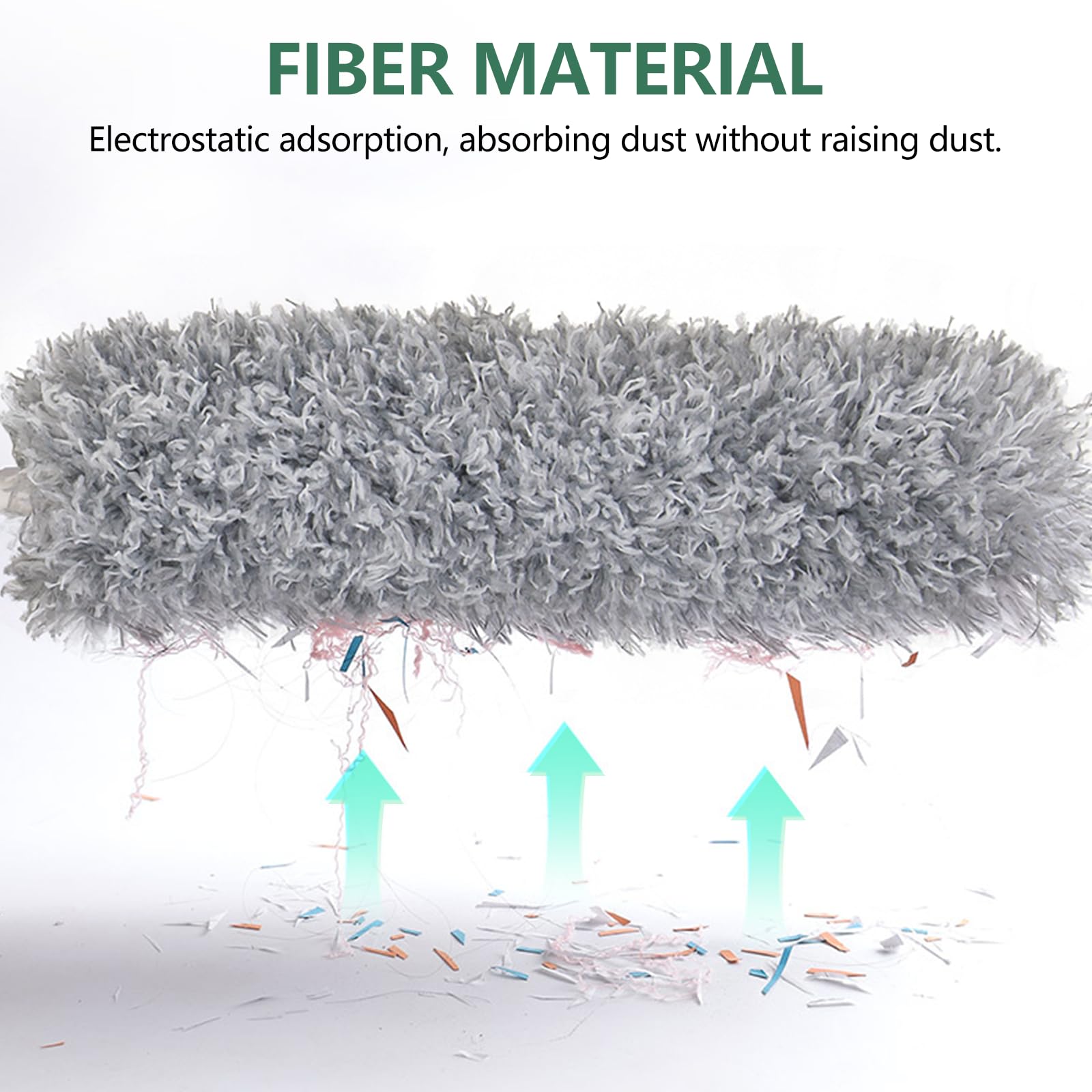MICROFIBER HEAD: The head is made with microfiber, which has strong electrostatic adsorption ability, and can quickly capture and absorb fine dust and hair. And you can use it wet or dry for cleaning dust.