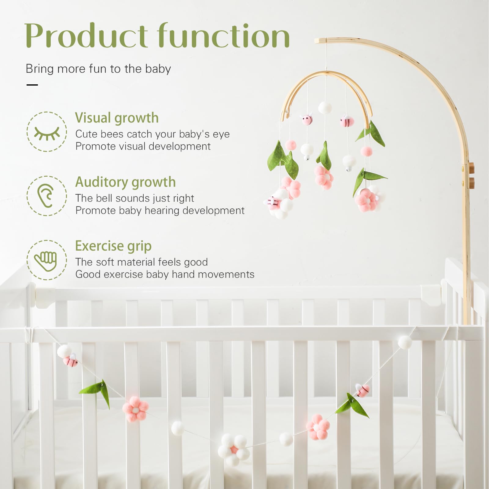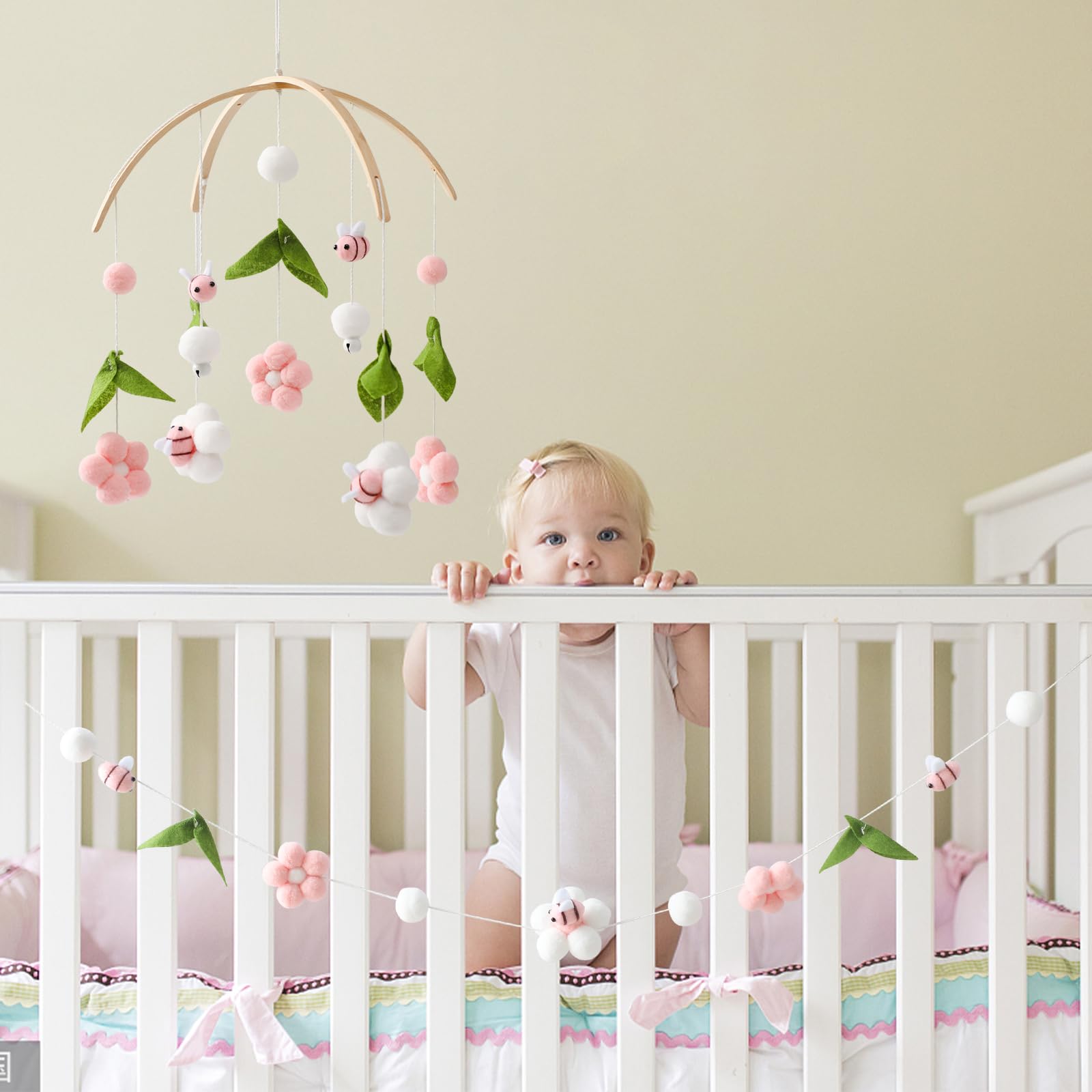 ๐ถ๐ป๐บSoft Sound -The random music played by most musical crib mobiles are not what baby wants or likes. This kind of music will affect the child's rest to a large extent,and it will not help the baby's sleep at all. Our mobiles for crib use small bells to make soft sounds, which are of great help to baby's sleep. ๐ถ๐ป๐บDolls and Colors -Bright colors can attract baby's attention and make baby more focused on the crib mobiles to fall asleep faster. These doll figures of honey, flowers and leaves can make baby feel close to nature,relax toddler faster and achieve the effect of good sleep. ๐ถ๐ป๐บAtmosphere Builder -Crib mobile is made of lighter material and will oscillate with the breeze. The breeze can make dolls rotate 360 degrees,creating a relaxed and pleasant atmosphere which is better for baby to relax. ๐ถ๐ป๐บGood Material -Material safety has always been the most important requirement for our products.The crib mobiles are composed of logs and cotton dolls which are made of safe and non-toxic. Our original aim is that bring joy to children while protect child safety. ๐ถ๐ป๐บPleasant Space Builder -Crib mobiles can not only help children sleep better, but can also be used as decorations to improve the details of the space. It can create a relaxed and pleasant space where parents and children can play and relax more happily.