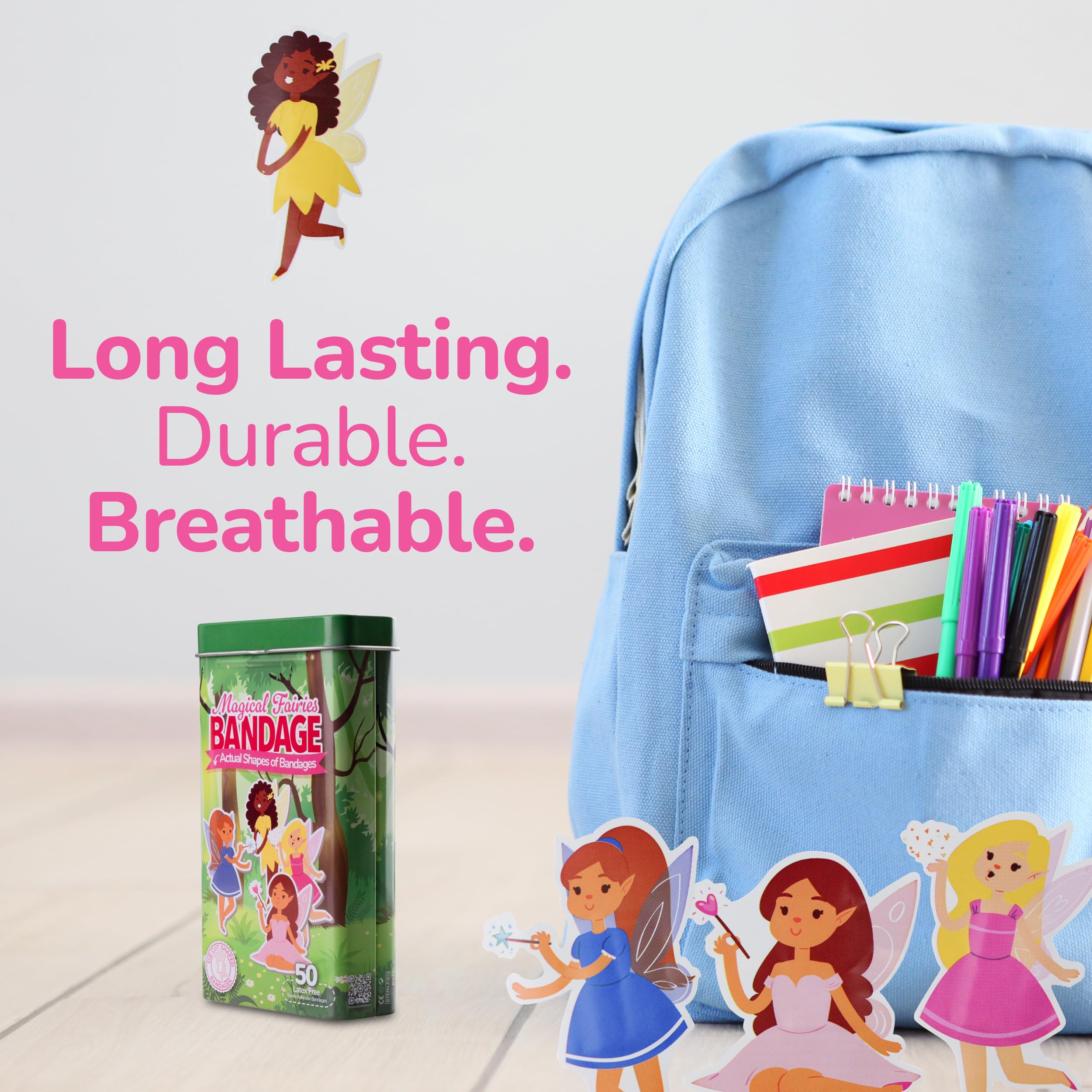 EASY TO CARRY AND USE: These cute and colorful Magical Fairies children's bandages are easy to take with you for travel, and easy to store in a home first aid kit; these healing bandages are perfect for school, summer camp, camping trips, weekend getaways and more