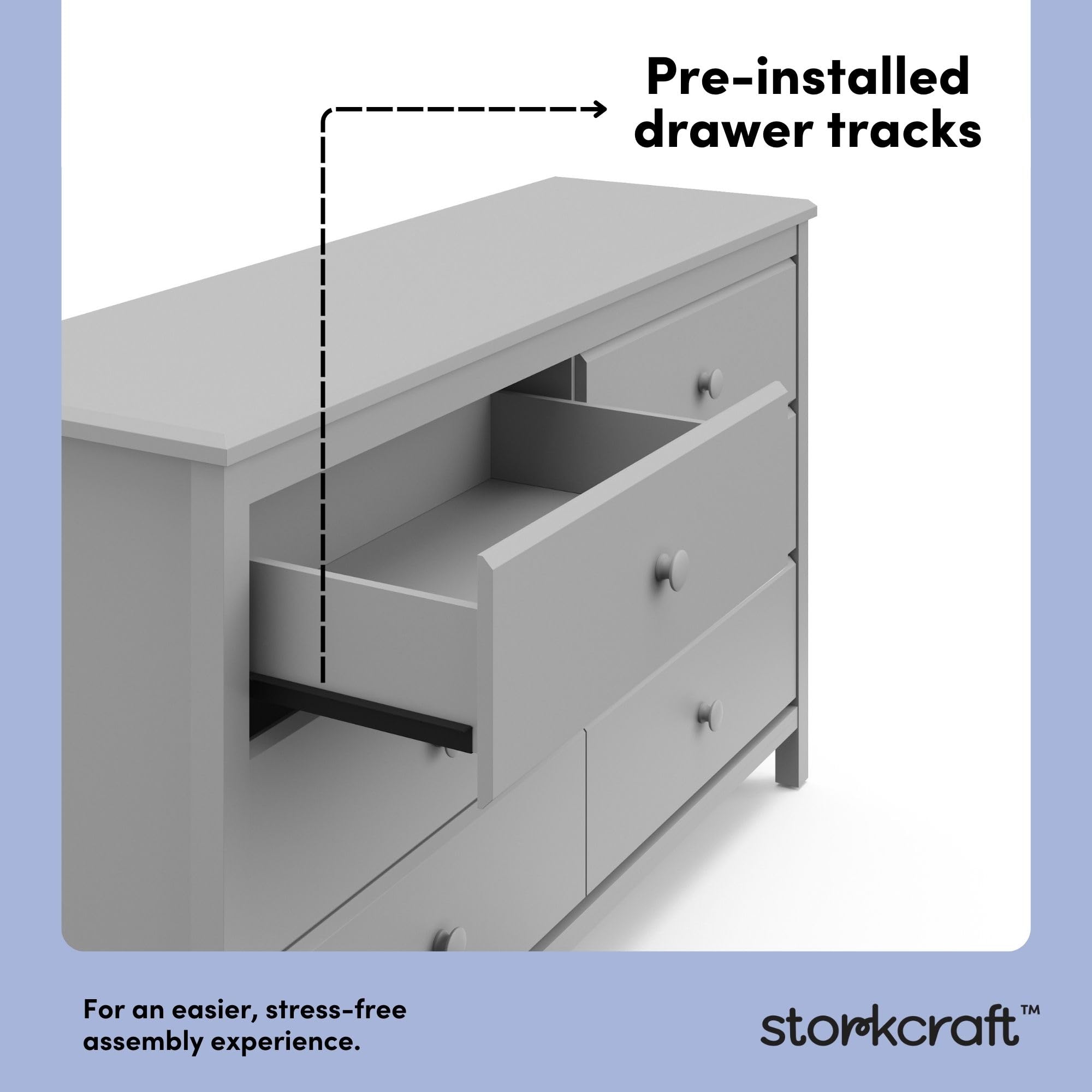 Introducing the timeless and versatile Storkcraft Alpine 6 Drawer Dresser — a practical choice for babies and kids that's easy to match with any nursery or bedroom style. To make the Alpine even more special, it features Storkcraft’s innovative, safety-focused interlocking drawer system, which allows only one drawer to open at a time. When used with the included furniture anti-tip kit, this system helps reduce the risk of furniture tip-overs. The Alpine is GREENGUARD Gold Certified, meaning it has been screened for over 10,000 chemicals and VOCs that can pollute indoor air — making it a cleaner, healthier choice for your home. Its durable laminate finish is tested to meet or exceed applicable ASTM and CPSIA safety standards. Designed to grow with your child, the Alpine offers six spacious drawers and transitions seamlessly from nursery to kids' room. Storkcraft has earned industry recognition from Fast Company, Parents, the Baby Innovation Awards, and more — and is proud to hold the Parent Tested Parent Approved (PTPA) Seal of Approval for nursery and children’s furniture. The Alpine is backed by Storkcraft’s real-life Customer Care team and a 1-year limited manufacturer’s warranty. Assembly required; two people recommended.
