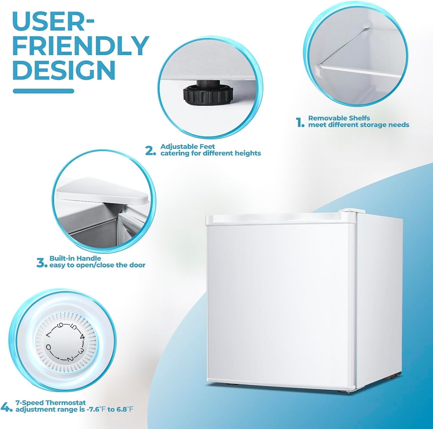 🧊POTABLE&COMPACT MINI FREEZER: Electactic Mini Freezer are suitable for Any Place!The Compact Upright Freezer with 17.3”(W)*18.1”(D)*19.3”(H) measurement and 1.2 cubic feet capacity is perfectly sized to taking up less space,suitable for university dormitory, RV, apartment, or office.
