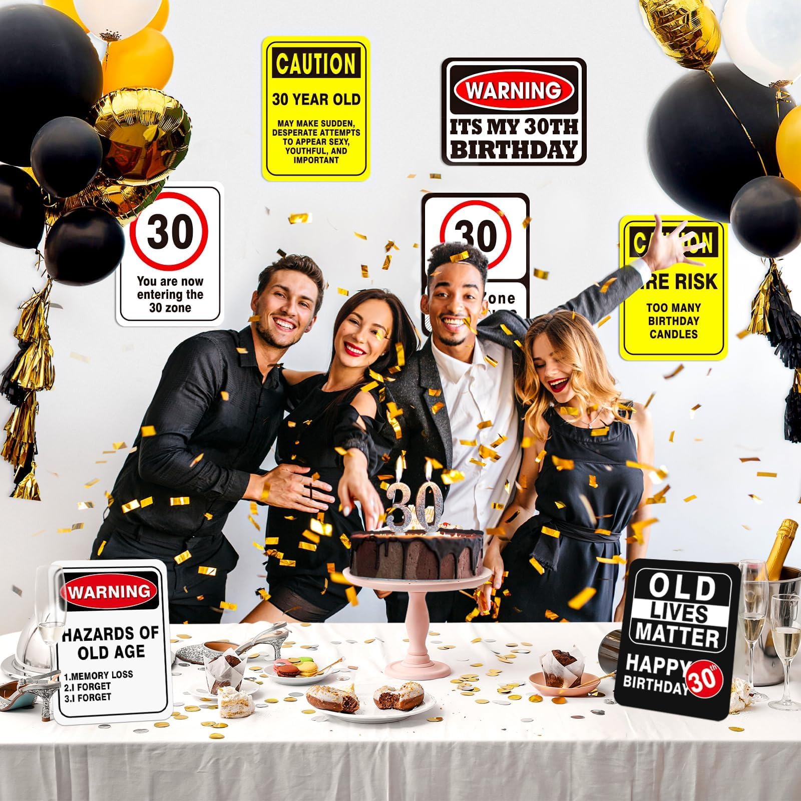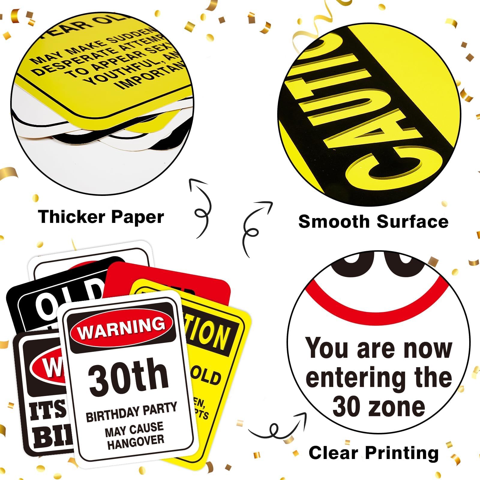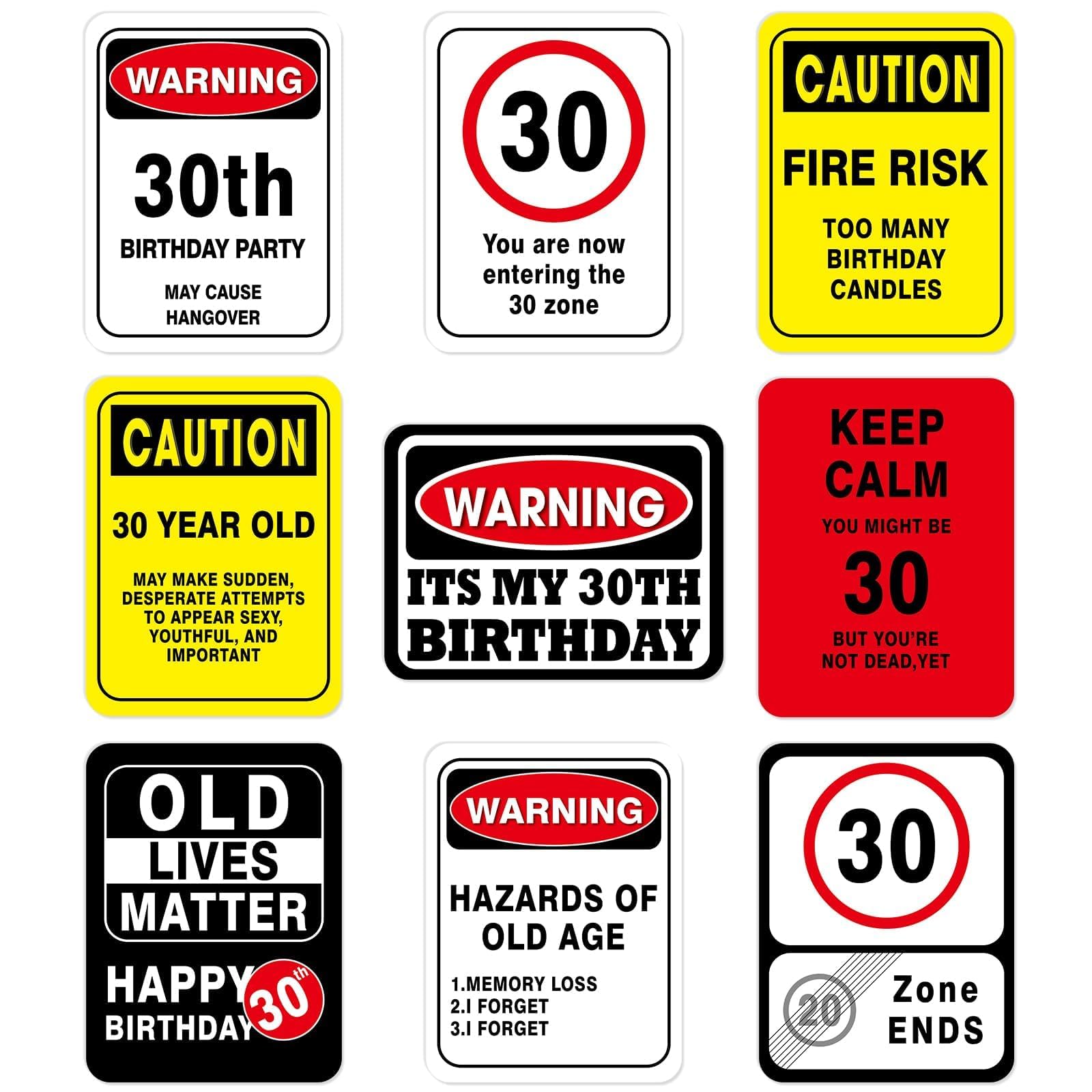 PACKAGE - 9 PCS dirty 30 picture props. All logos measure 11.8" X 8.8". Large and bright banners. Total 9 patterns: warning: 30th birthday party, caution: 30 year old, 20 zone ends, You are now entering the 30 zone.