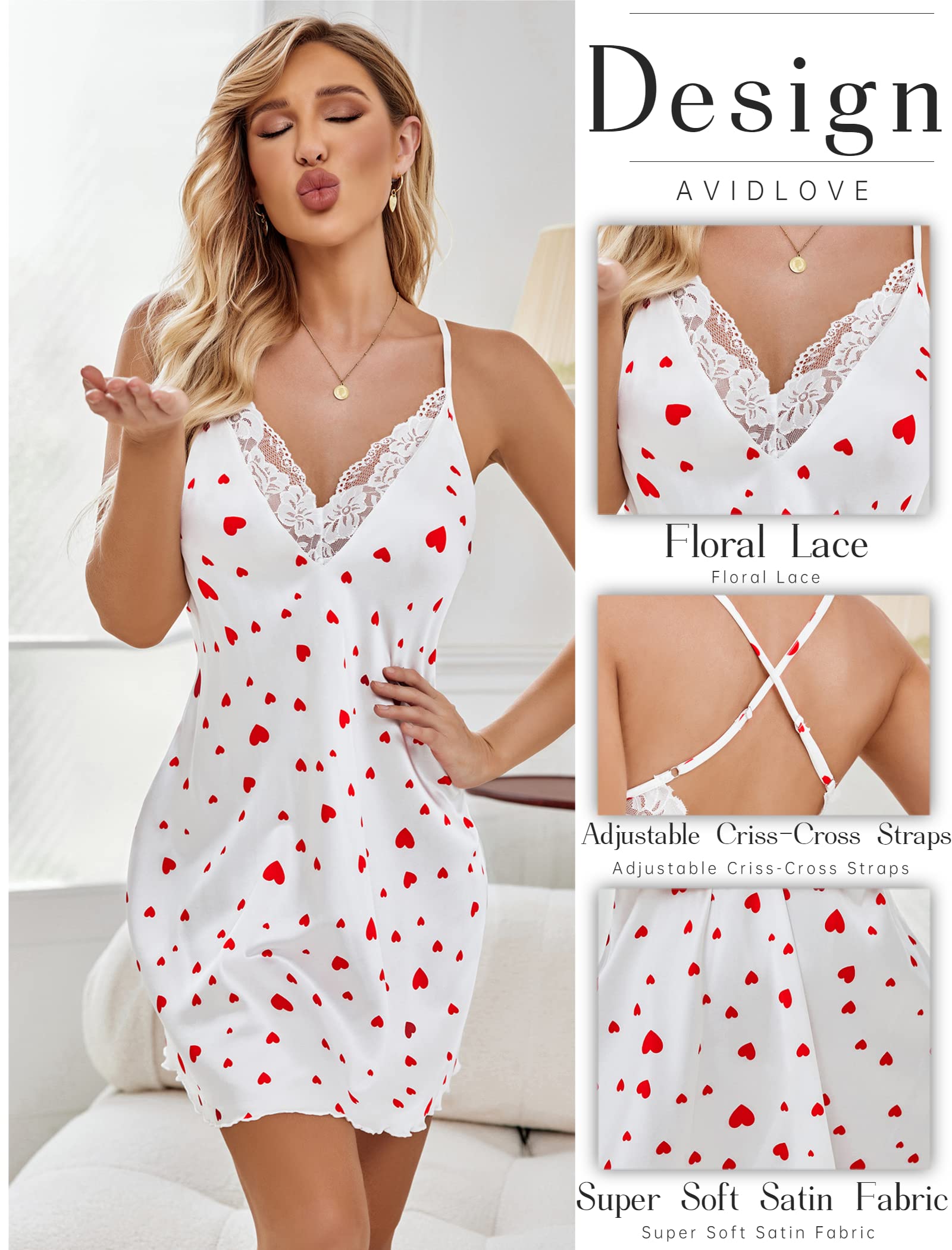 ❤️If you really to impress your partner and have a very romantic moment get this lovely silk nightgown for women 100% recommended!! Avidlove satin nightgown for women features deep V plunge front, adjustable criss-cross straps, floral lace decoration, it inspires sultry flirtation and your true beauty. The cut of this and the slight stretch in the lace makes the fit very forgiving and comfortable. Sexy way to add some spice to your bedroom!