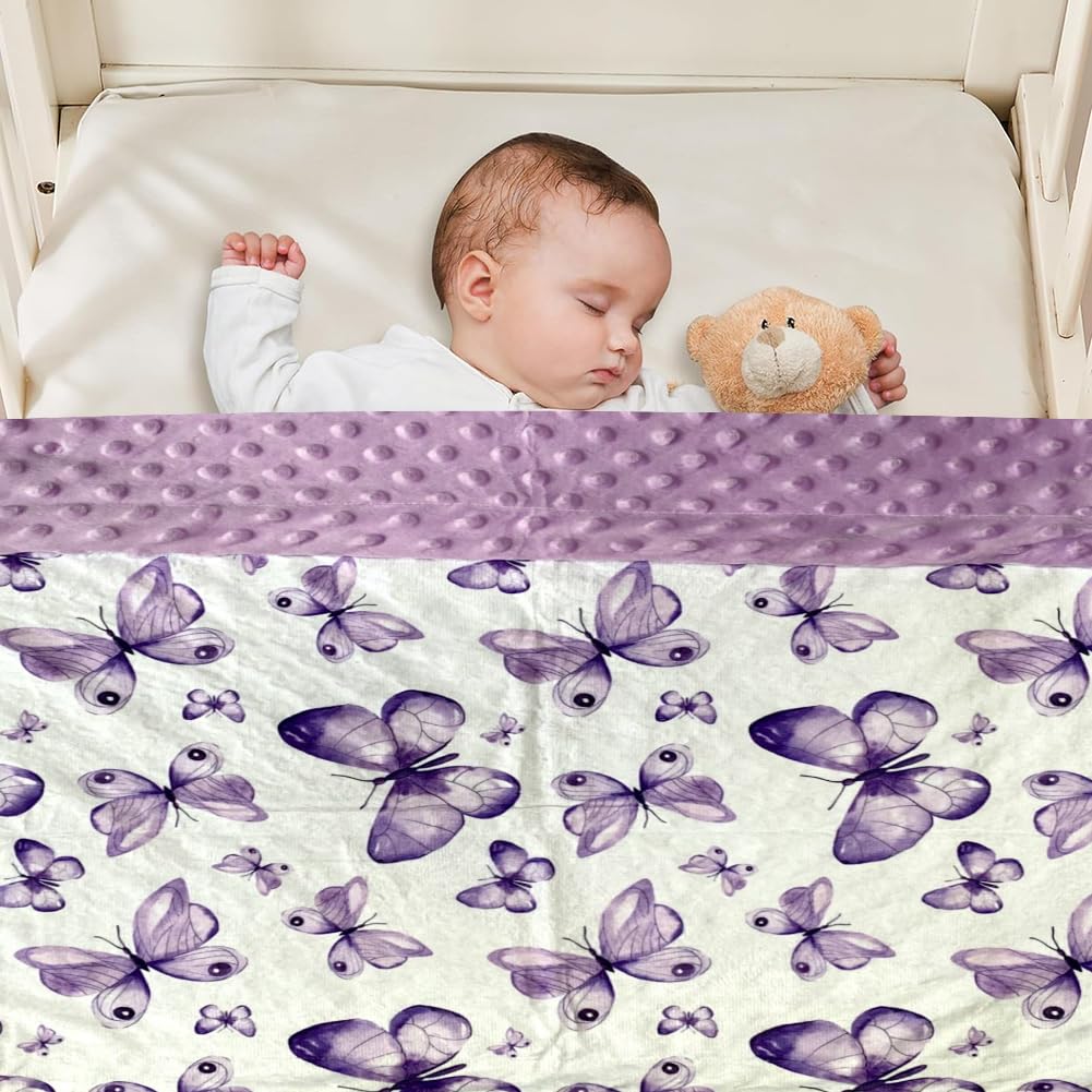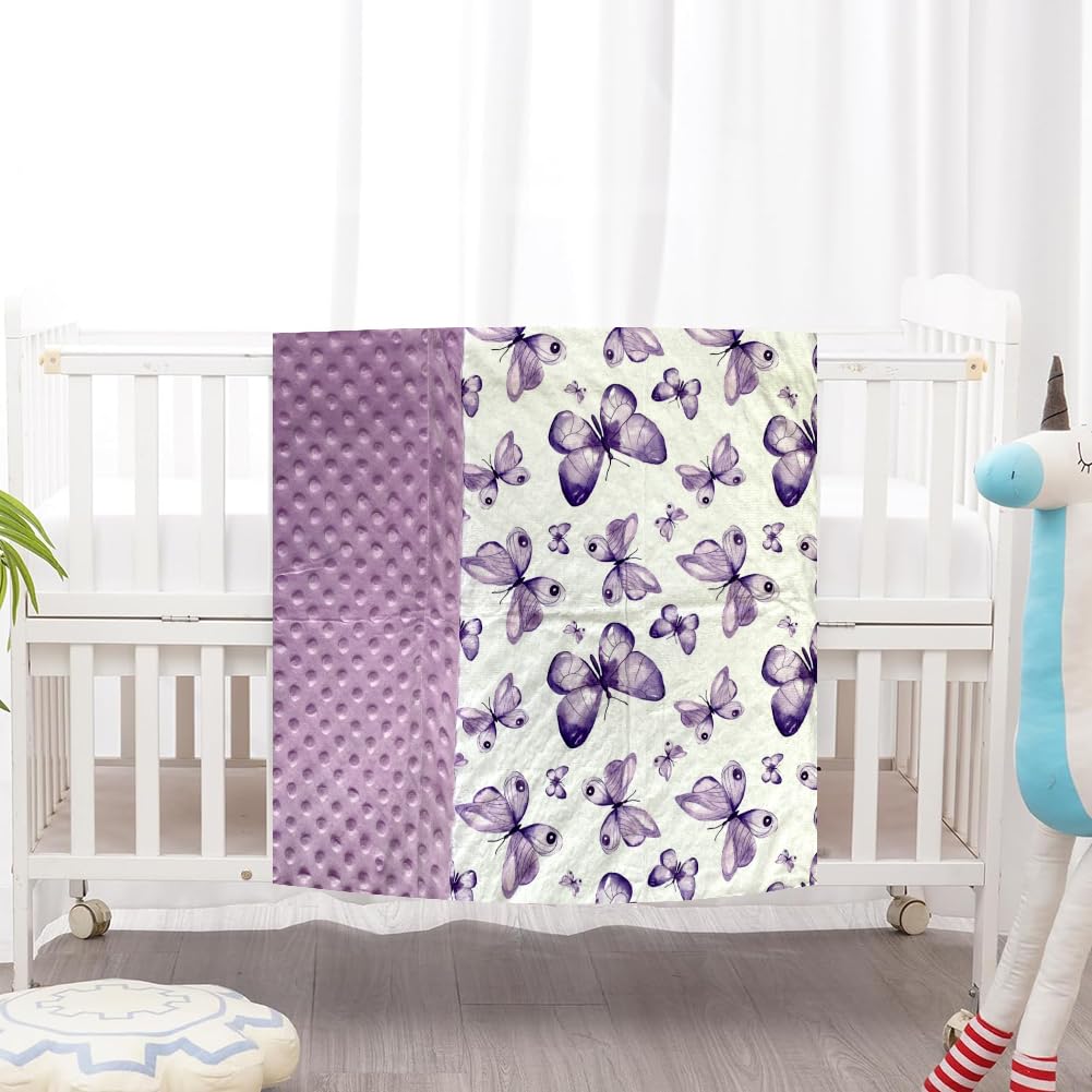 【Unique Design】 Baby Blanket for Girls double layers design can keep your baby warm in cold weather and it is right weight without being too havy to be hot. Besides, the design allows it to be used in both sides, the minky side can be used for wrapping your little one keeping your baby warm in winter. The other side has three-dimensional dots that can pacify your baby like gentle caressing from a mother, and help your baby fall asleep quickly.