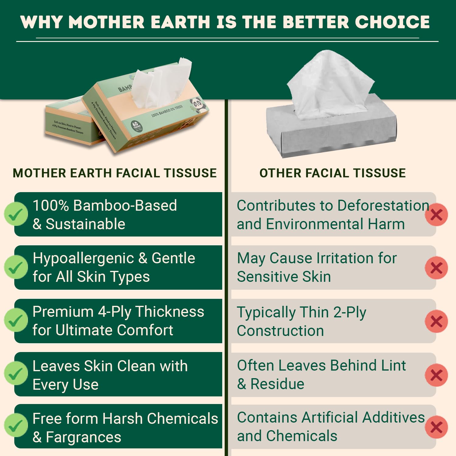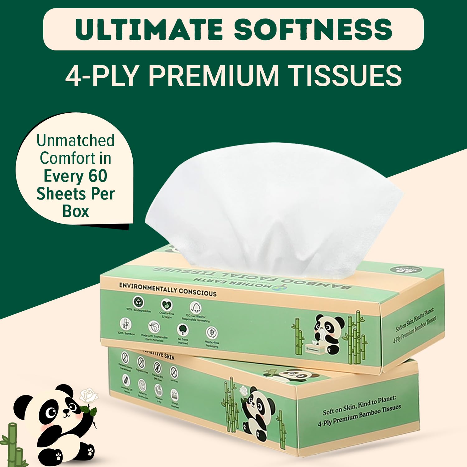 Bamboo-Based: Made entirely from bamboo, a quickly growing grass, offering a green alternative to traditional tree-based facial tissues.