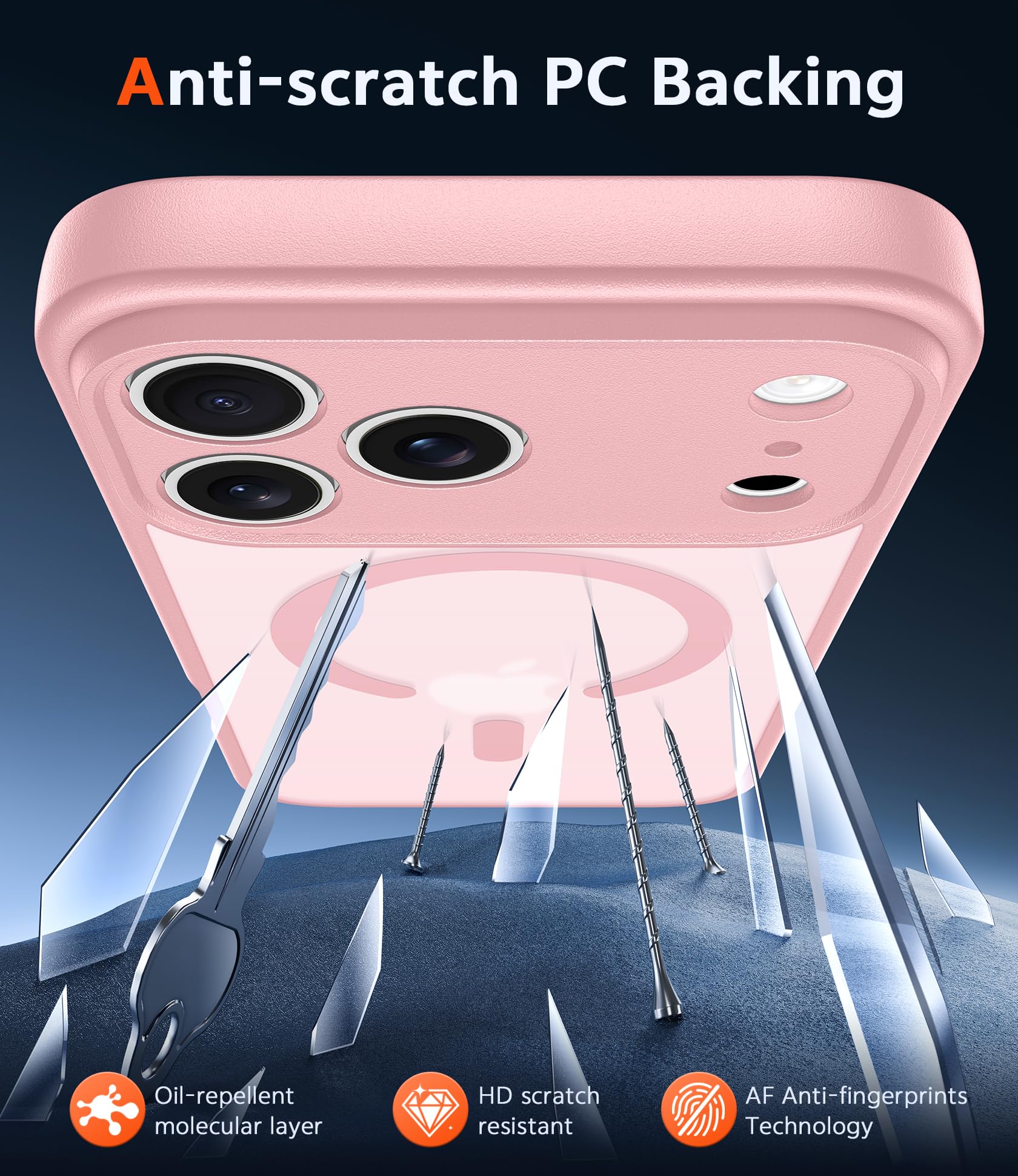 Matte Texture & Excellent Touch Feel: The iPhone 17 pro case uses high-grade matte TPU and PC translucent material, refined and elegant beauty without obscuring the logo. The frosted surface provides you with a comfortable hand feel and the nano-antioxidant layer can effectively prevent stains and scratches