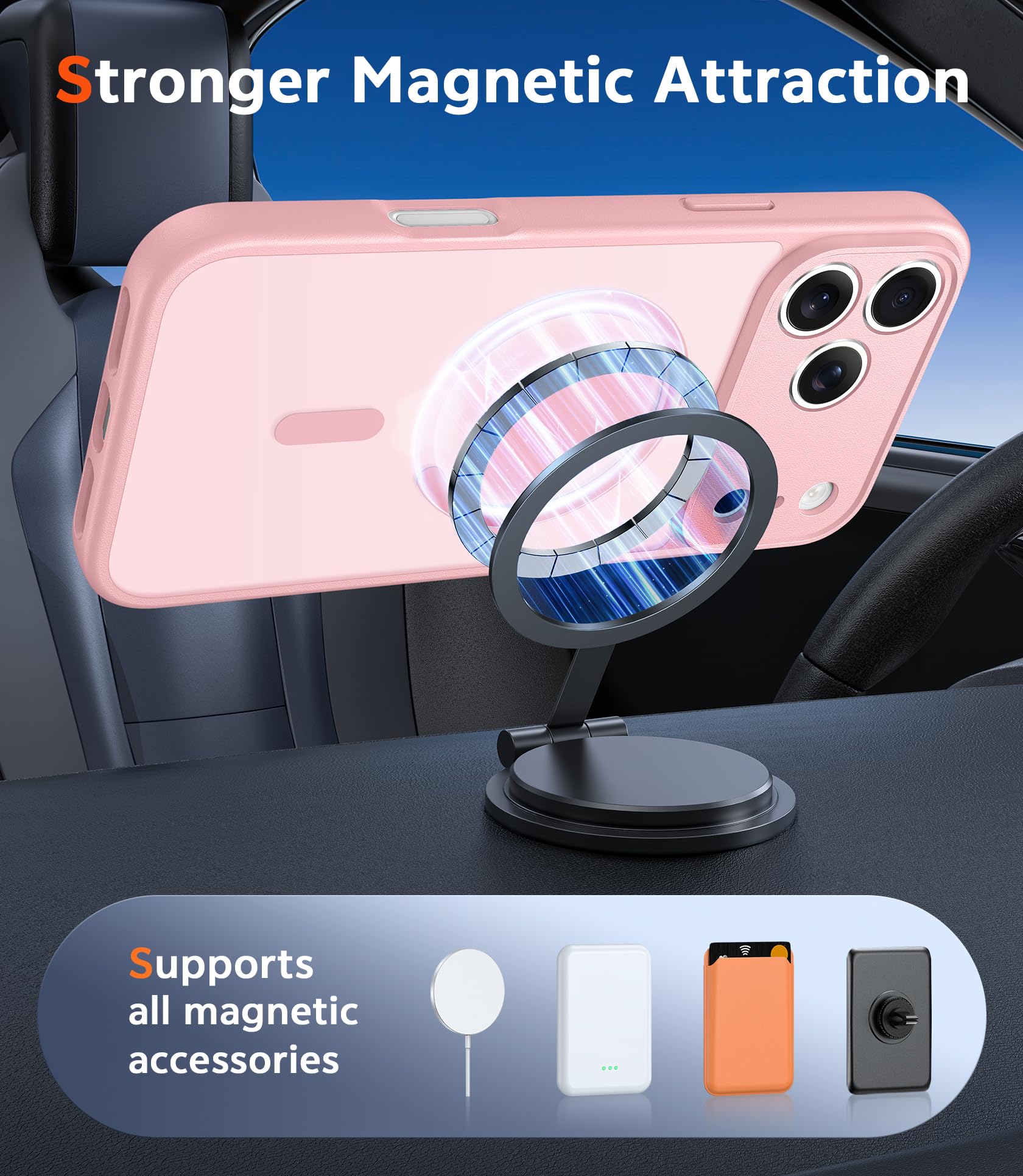 Strong Magnetic Attraction: For Magnetic chargers and other Qi Wireless chargers without signal influence. The iPhone 17 pro magnetic case has built-in 38 super N52 magnets. Its magnetic attraction reaches 2400 gf, which is almost 7X stronger than ordinary, therefore it won't fall off no matter how it shakes when you are charging