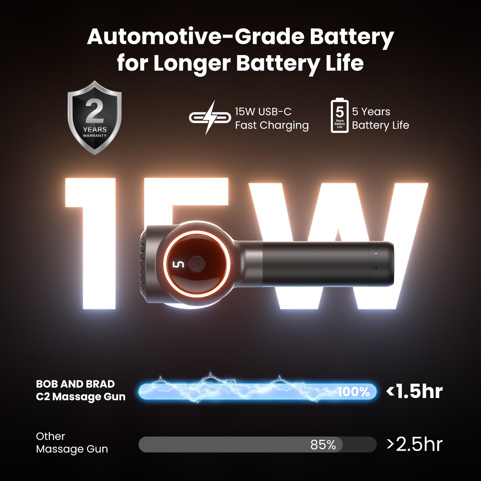 Uniquely Elegant: Bob and Brad C2 Massage Gun is crafted from premium ABS material, not cheap plastic or stainless steel, with a silicone grip added to minimize hand vibration, conforming to ergonomic design. Paired with the latest brushless motor and automotive-grade battery, it ensures stronger, safer power output. These features make it the ultimate choice for gifting.