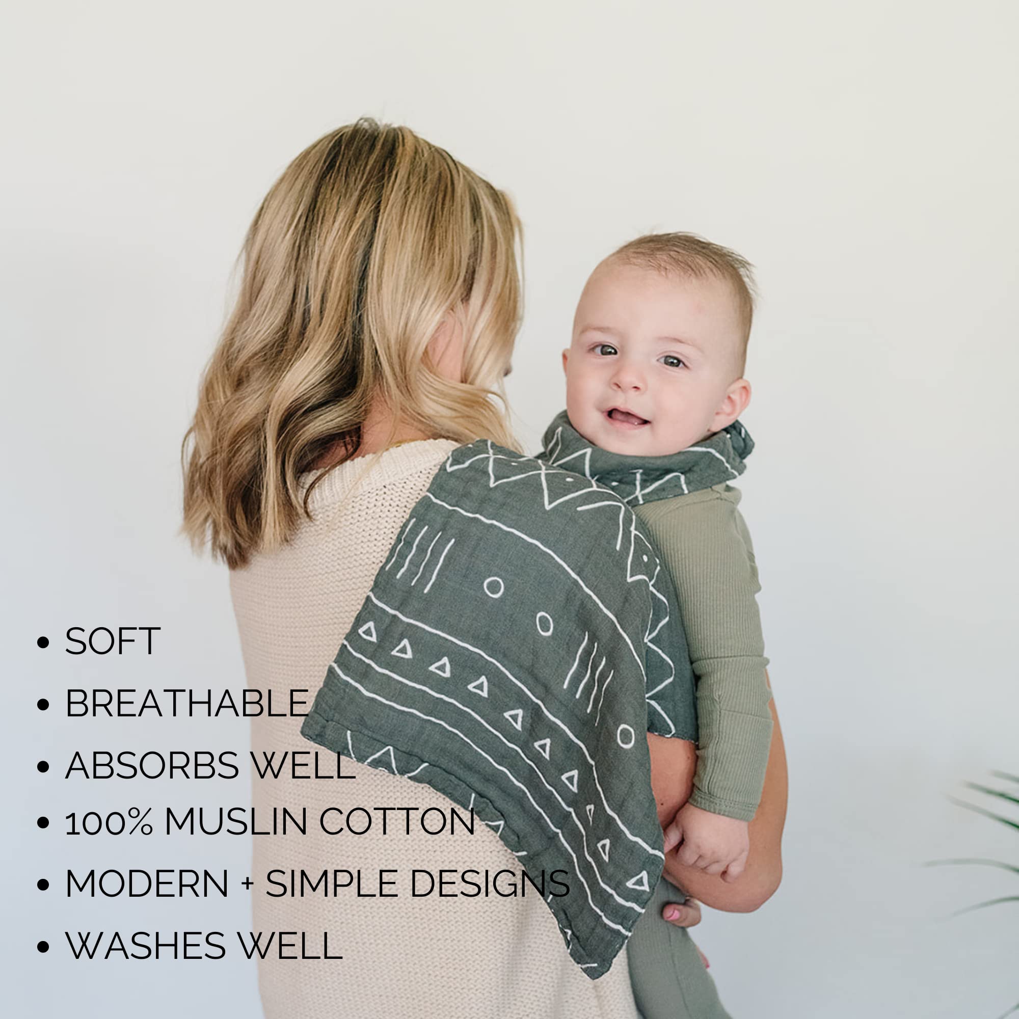Multi-Use Burp Cloths - Our muslin burp cloths are a must have for you list of registry essentials. They can easily be used as washcloths, face towels, bibs, spit up cloths, and so much more!
