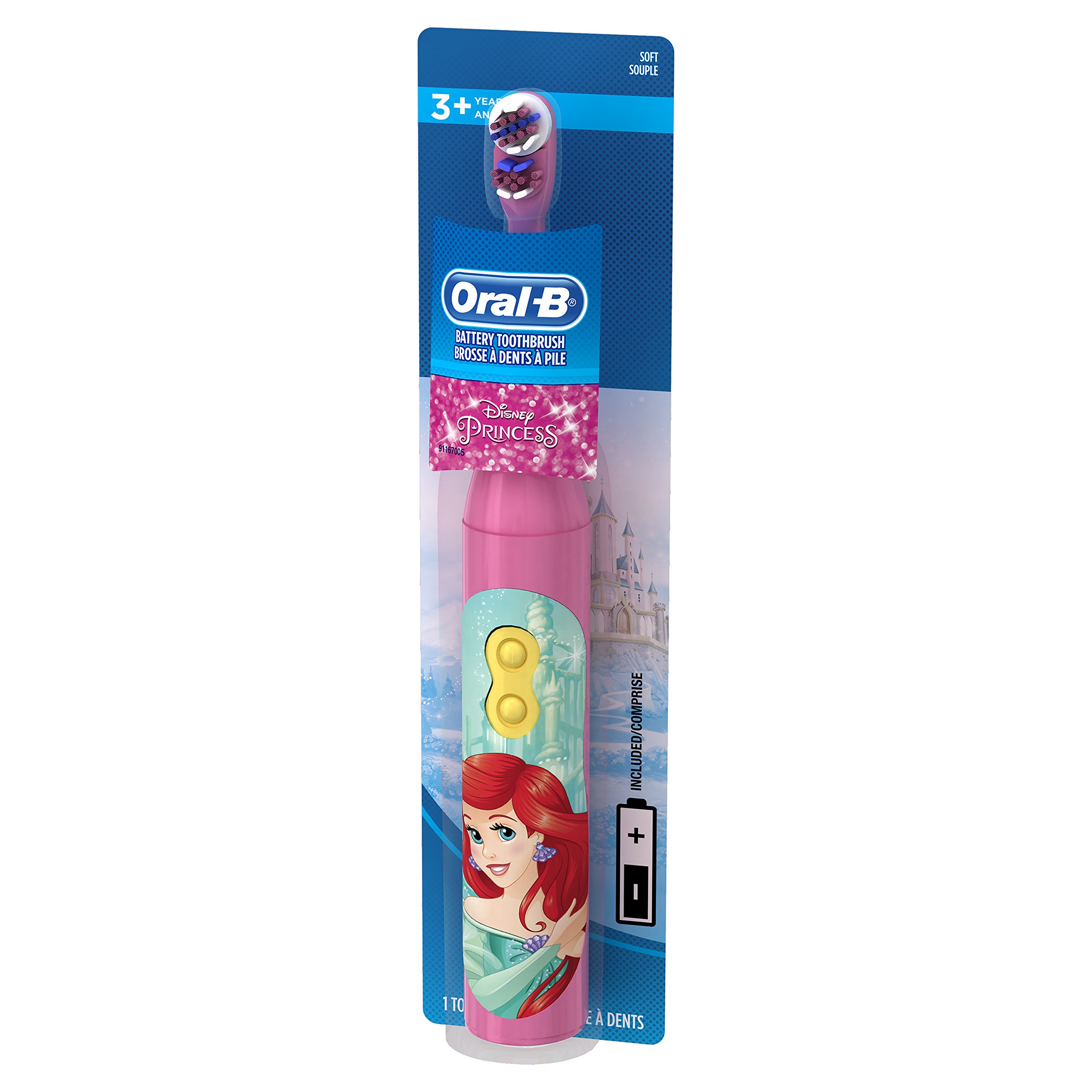 Oral-B Toothbrush Power Disney Princess Soft (2 Pack) - Oral-B Disney Princess Kids Electric Toothbrush: Step up your kid's oral care arsenal with our exclusive Disney oral hygiene kit. Oral B manufactures toothbrushes with three different styles of artwork featuring Belle, Ariel, and Moana. The Disney Magic App Timer is included with each toothbrush. The app allows your children to uncover exciting new characters when they brush for the doctor's recommended duration for their age. The toothbrush has a raised center section to effectively clean chewing surfaces where cavities tend to form. The new generation of these brushes lasts 2 times longer than the previous. The battery is replaceable, but the brush head is not. It is recommended that the brush be replaced every 3 months. We cannot guarantee a specific character will come with your order or that you will receive two different versions.