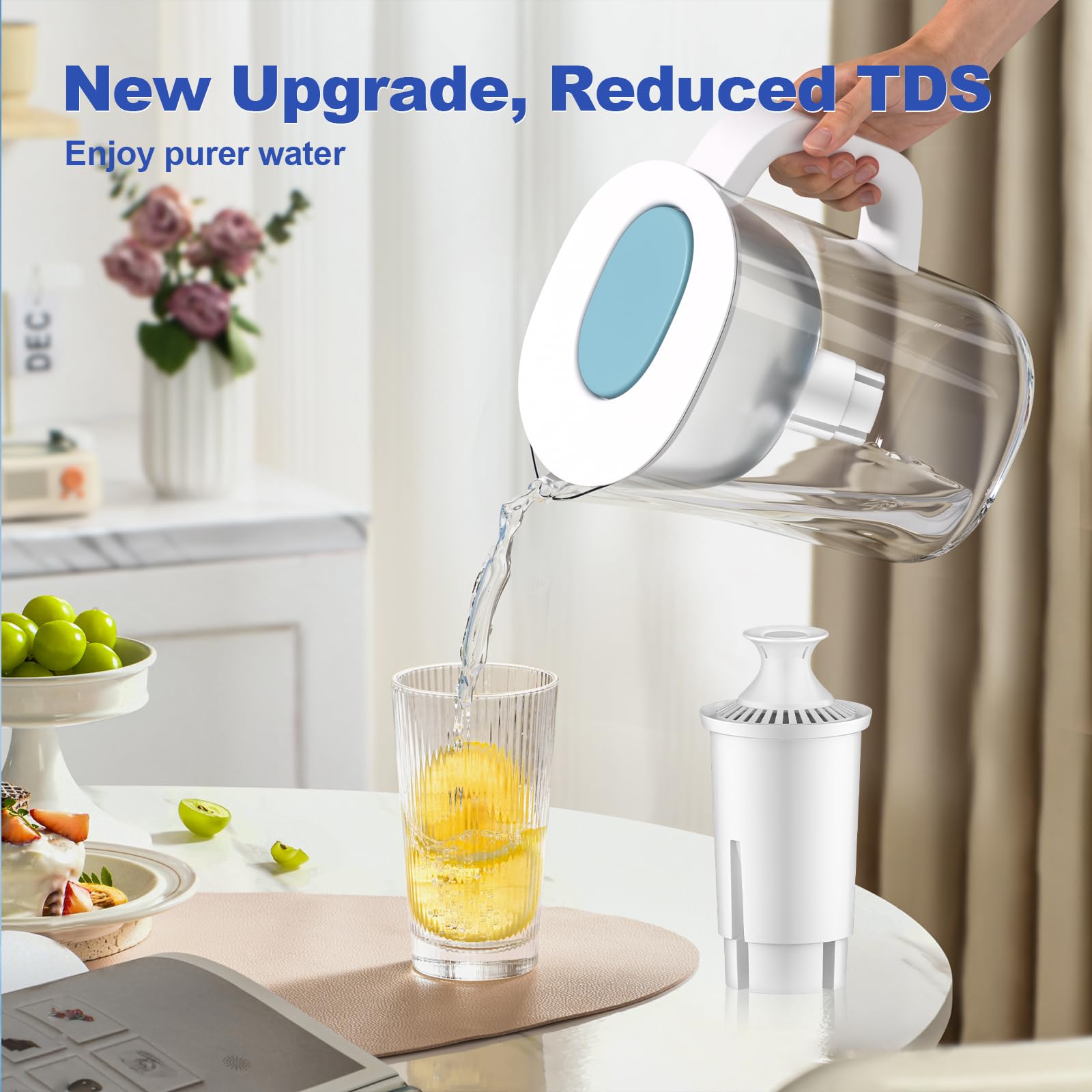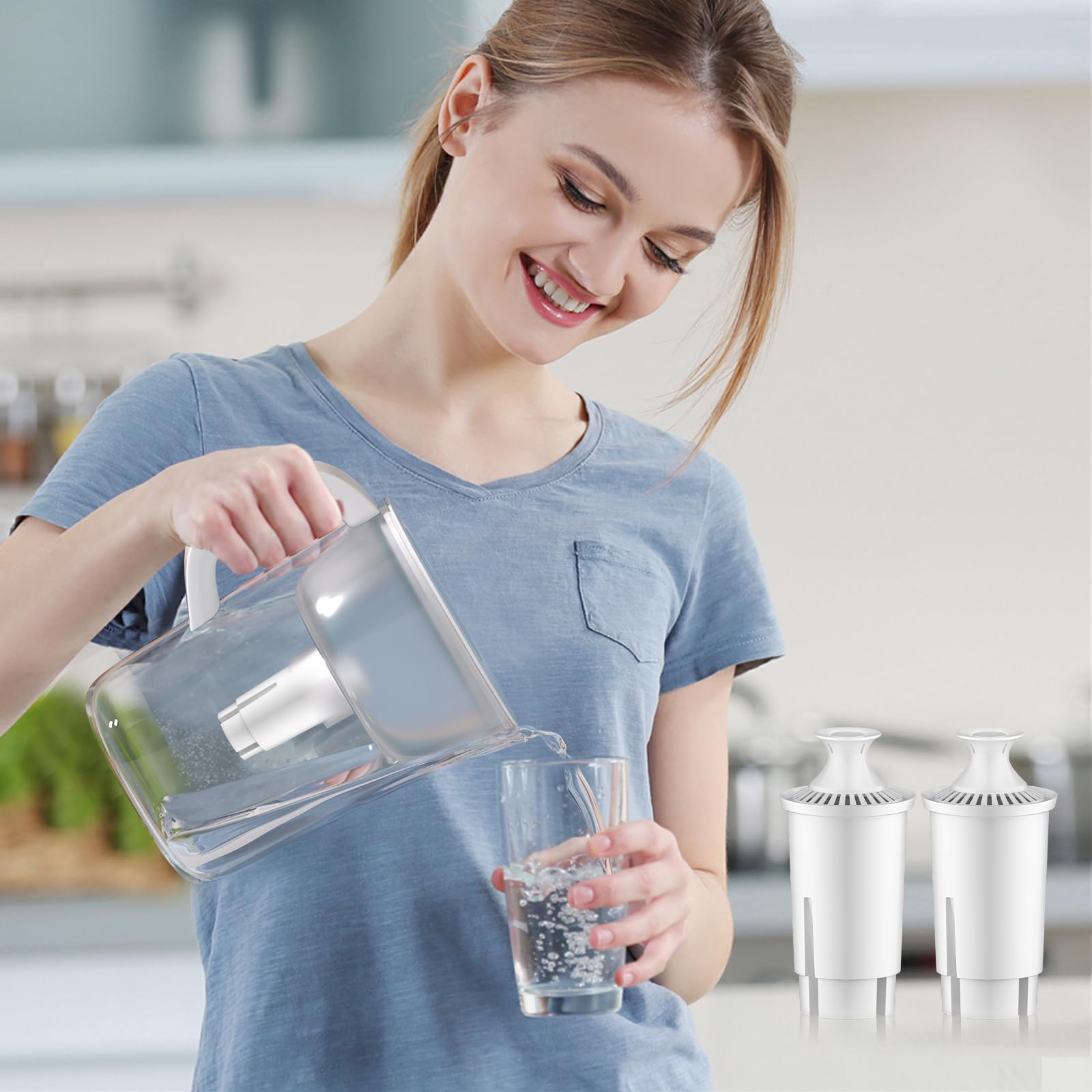Affordable Filter Cartridge: One pitcher replacement filter can filter up to 40 gallons of water, may vary depending on water conditions, saving you money and reducing plastic waste at the same time, one filter replaces 302 0.5 L, disposable plastic water bottles,Note: If the filter cartridge stops dispensing water after prolonged use (in rare cases), simply repeat the activation steps: rinse and shake the cartridge for 15 seconds to restore normal operation