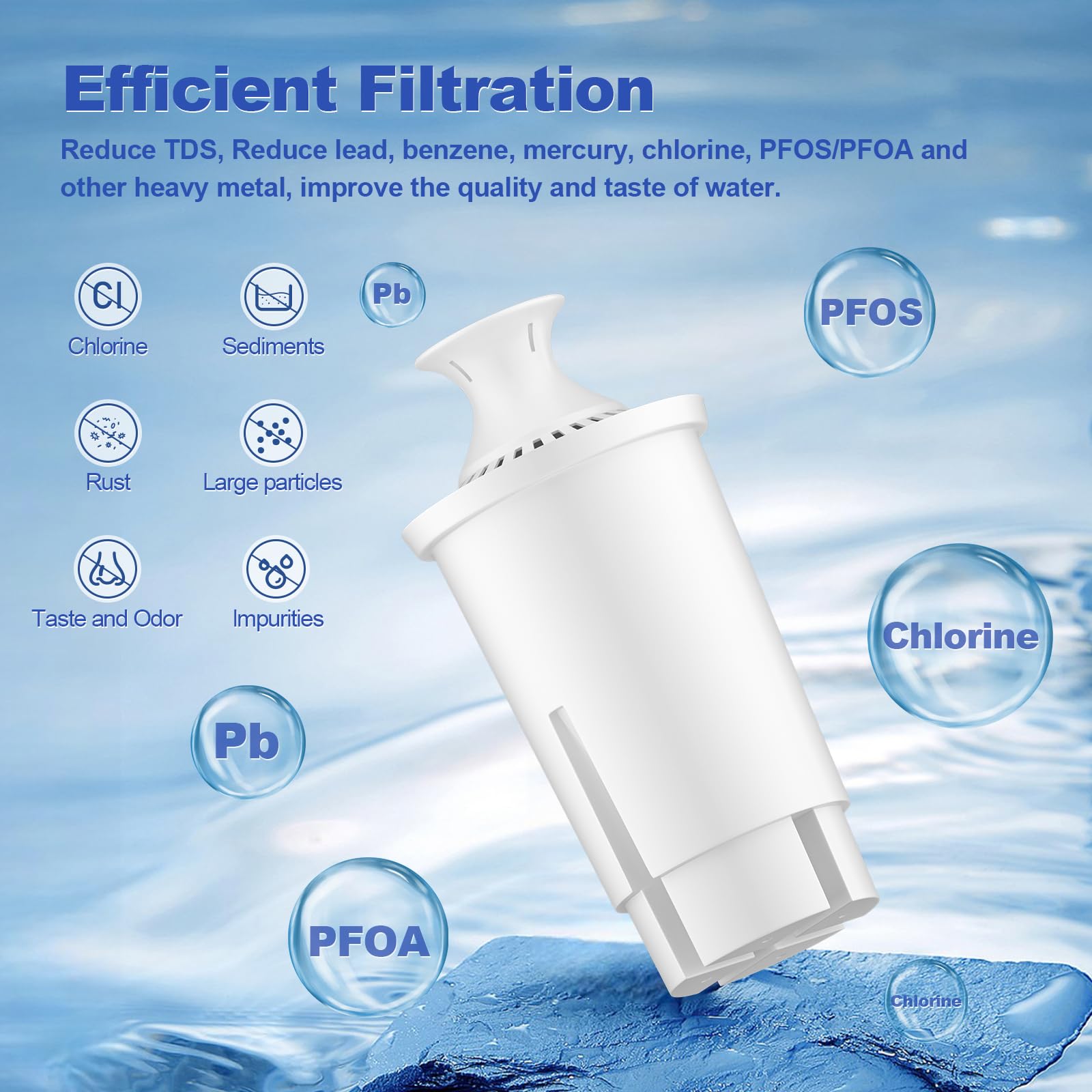 Premium Multi-Stage Filtration: Our water filter replacement uses multi-layer membranes to ensure high efficiency filtration, and the water filters for pitchers use coconut shell activated carbon pre-filtration layer and high quality ion exchange resin to ensure maximum filtration and clean water quality, ensuring that you get pure-tasting, high quality drinking water