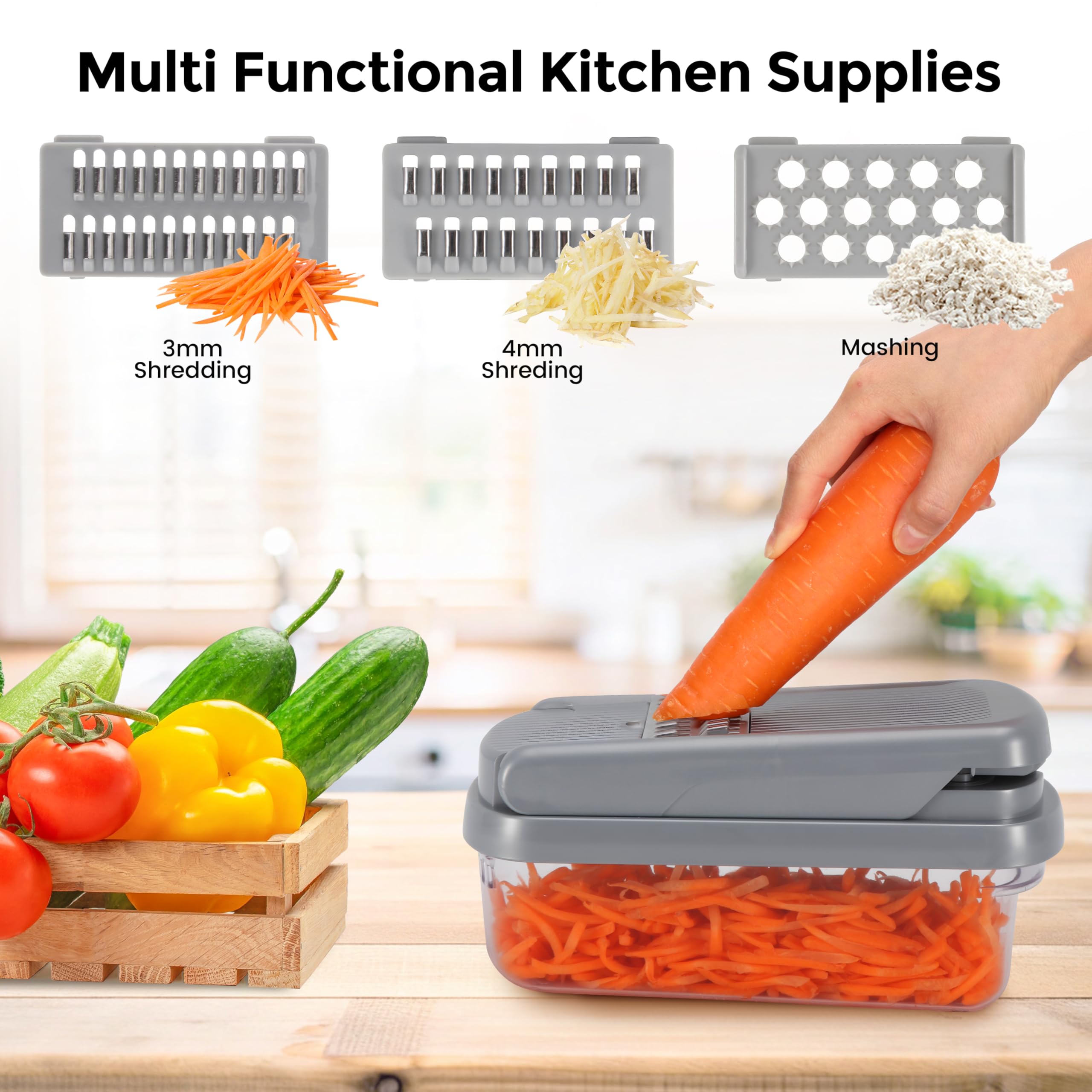 【EXCELLENT QUALITY】The vegetable shredder blade is made of durable ABS and 420J2 stainless steel, ensuring it won't rust. It efficiently chops, dices, and slices fruits, vegetables, and cheese with precision.The all-in-one chopper features a sharp hardened stainless steel blade that reduces clutter while cutting accurately. Equipped with a non-slip base for stable fixation on the tabletop during use, it effectively prevents accidental sliding and injuries—providing you with a safer kitchen experience