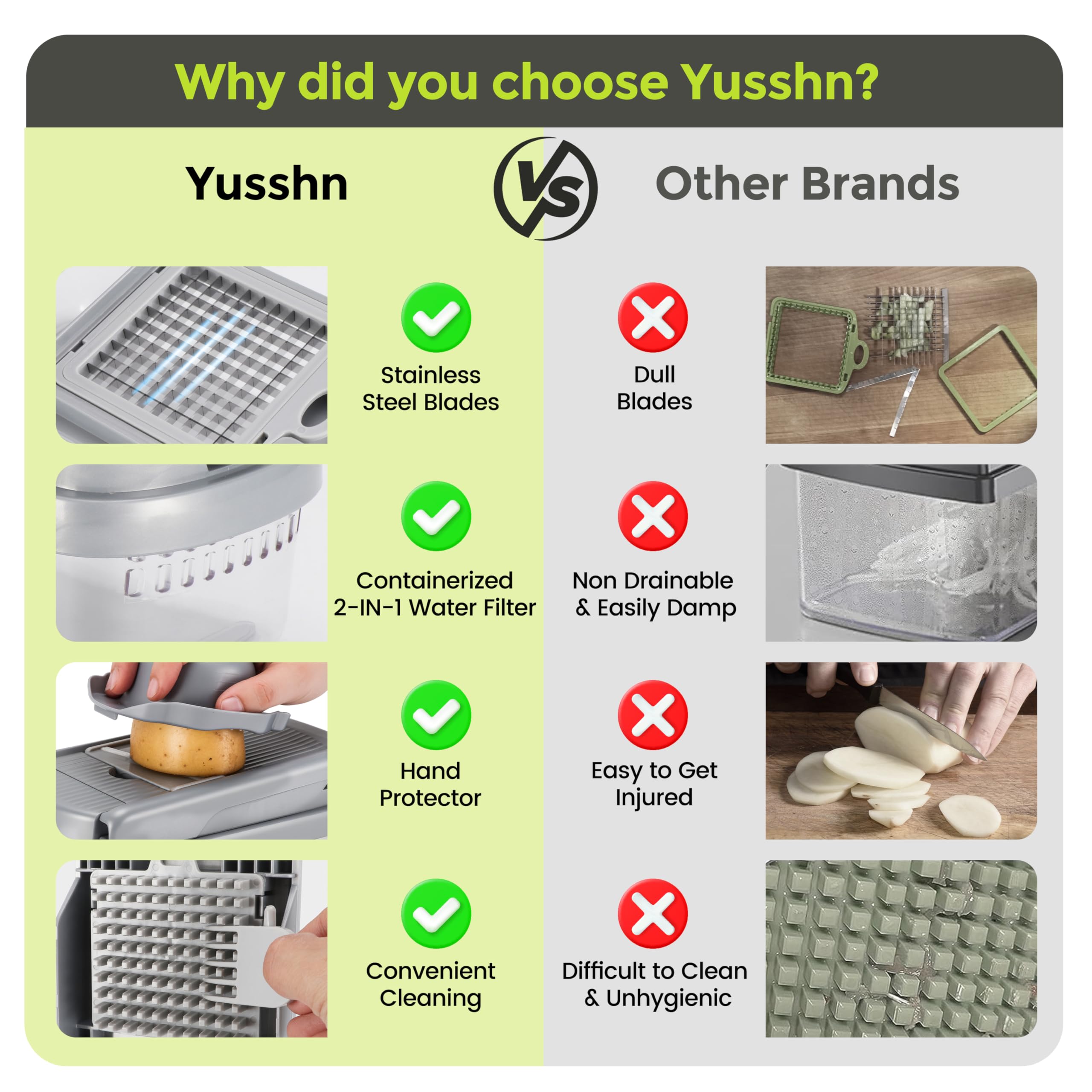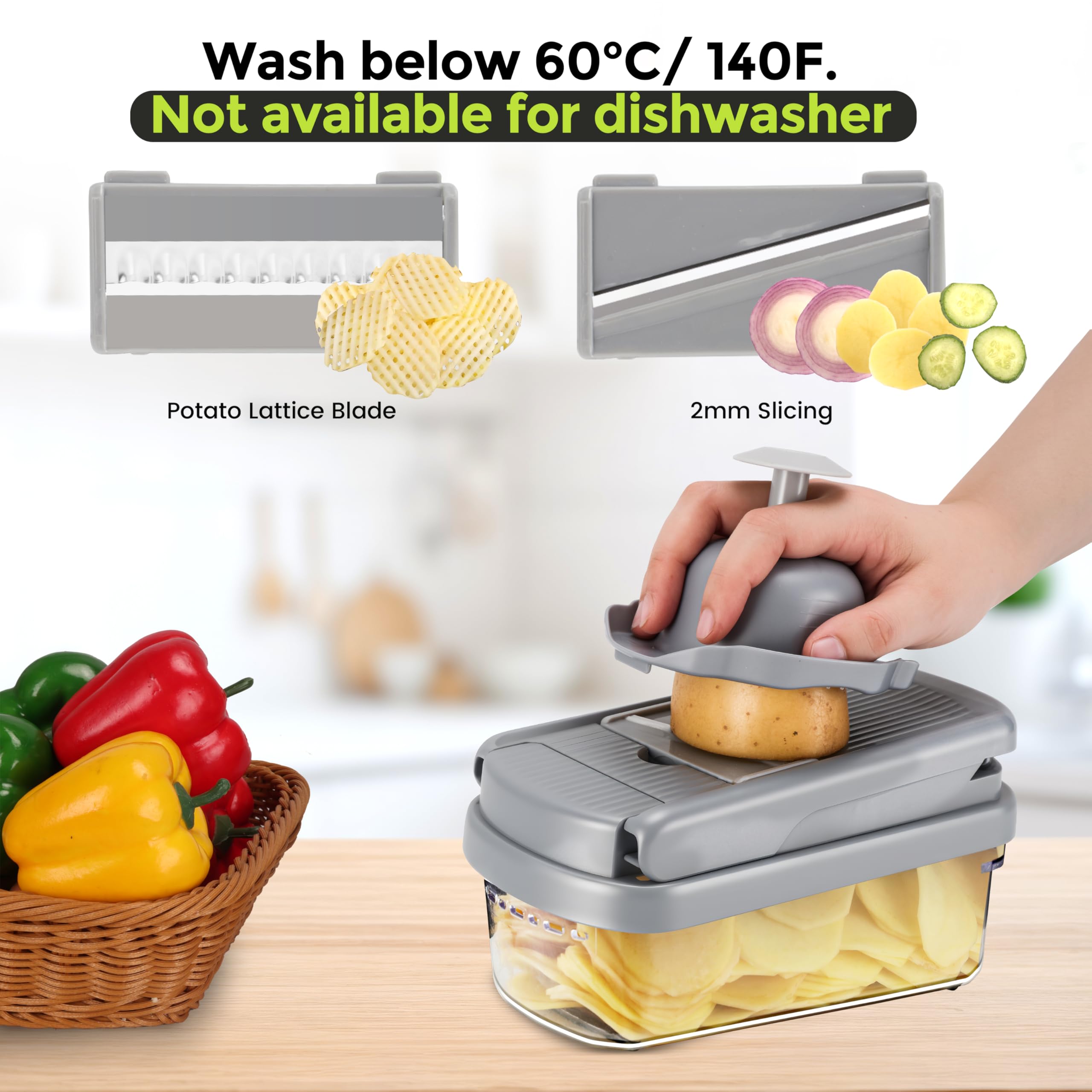 【CONTAINERIZED 2-IN-1 WATER FILTER】The latest upgrade integrates the water filter basket and container, streamlining the process of food cleaning and collection by eliminating the need for loading and disassembly. With a generous capacity, it is designed to accommodate chopped and diced ingredients efficiently. Constructed entirely from ABS material, this vegetable chopper boasts exceptional heat resistance, high hardness, and superior impact resistance. Wash below 60°C/140F.Not available for dishwashe