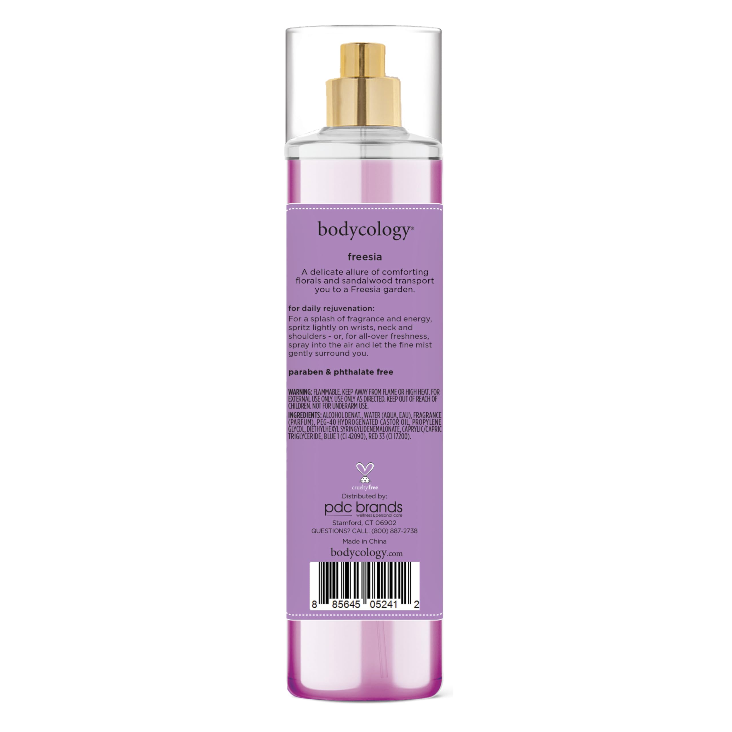 Delight in the timeless beauty of florals with Bodycology Freesia Fragrance Mist. This light and refreshing mist capture the delicate scent of freesia, soft rose, and warm sandalwood. Whether you’re looking for a subtle spritz or a lasting impression, this mist is ideal for adding a touch of delicate allure to your day. Pair with Freesia Body Cream and Body Wash to layer the scent and enjoy an all-day floral escape. This mist is your go-to for a little everyday getaway. Paraben & Phthalate free, and always cruelty free.